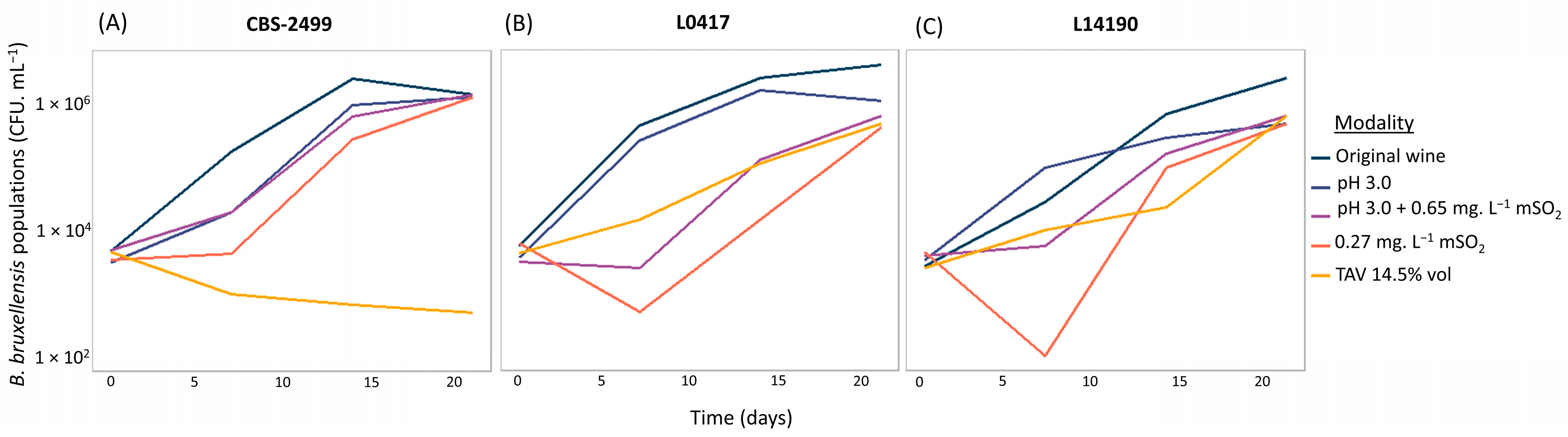 APA StyleOlazabal, L., Dapzol, Q., Albertin, W., Miot-Sertier, C., Deleris-Bou, M., Boisramé, A., & Dols-Lafargue, M. (2025). Brettanomyces bruxellensis Strains Display Variable Resistance to Cycloheximide: Consequences on the Monitoring of Wine. Microorganisms, 13(11), 2597. https://doi.org/10.3390/microorganisms13112597