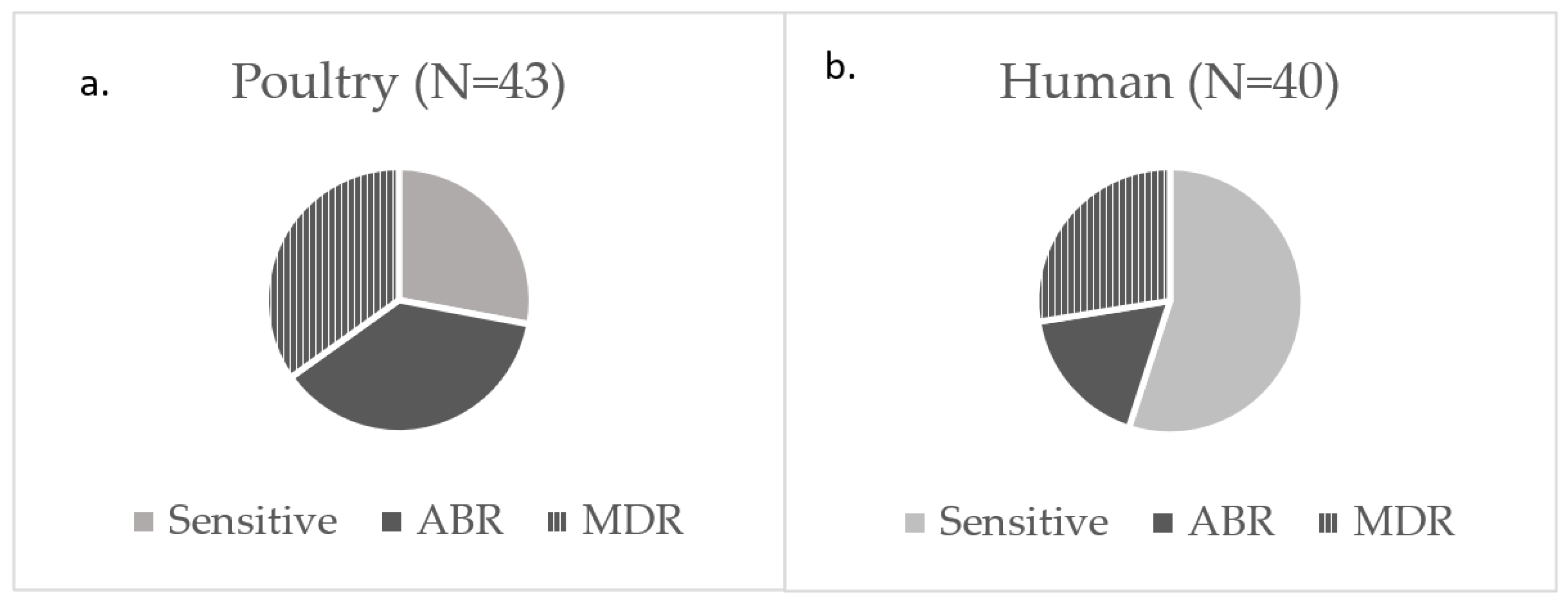 - Meena, P.R.; Priyanka, P.; Rana, A.; Raj, D.; Singh, A.P. Alarming level of single or multidrug resistance in poultry environments-associated extraintestinal pathogenic pathotypes with potential to affect the One Health. Env. Microbiol. Rep. 2022, 14, 400–411. [Google Scholar] [CrossRef] [PubMed]