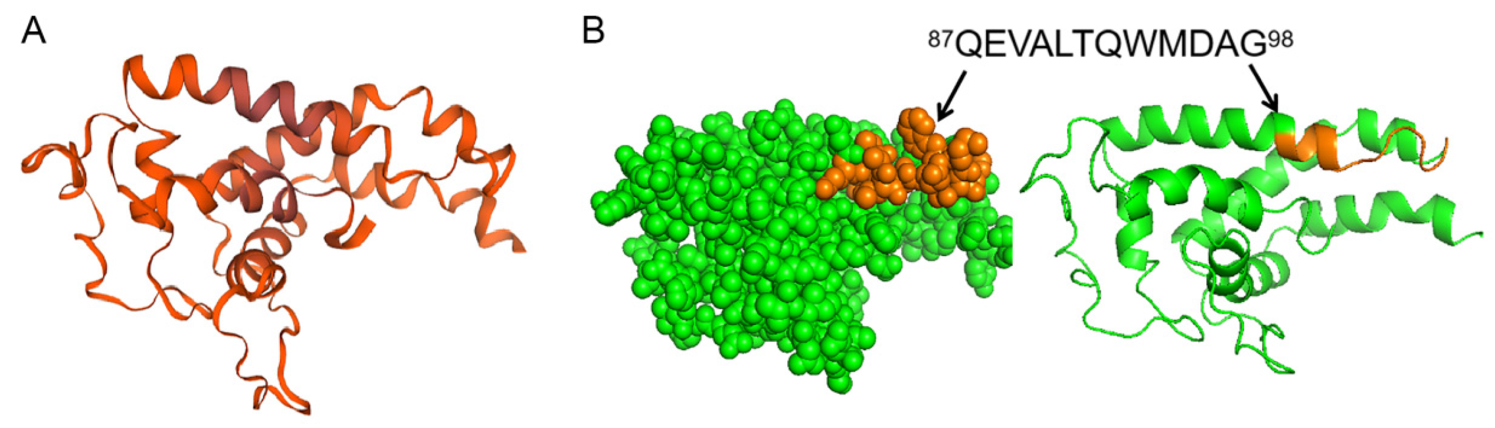 2.10. Conservation Analysis and Spatial Localization of the Epitope