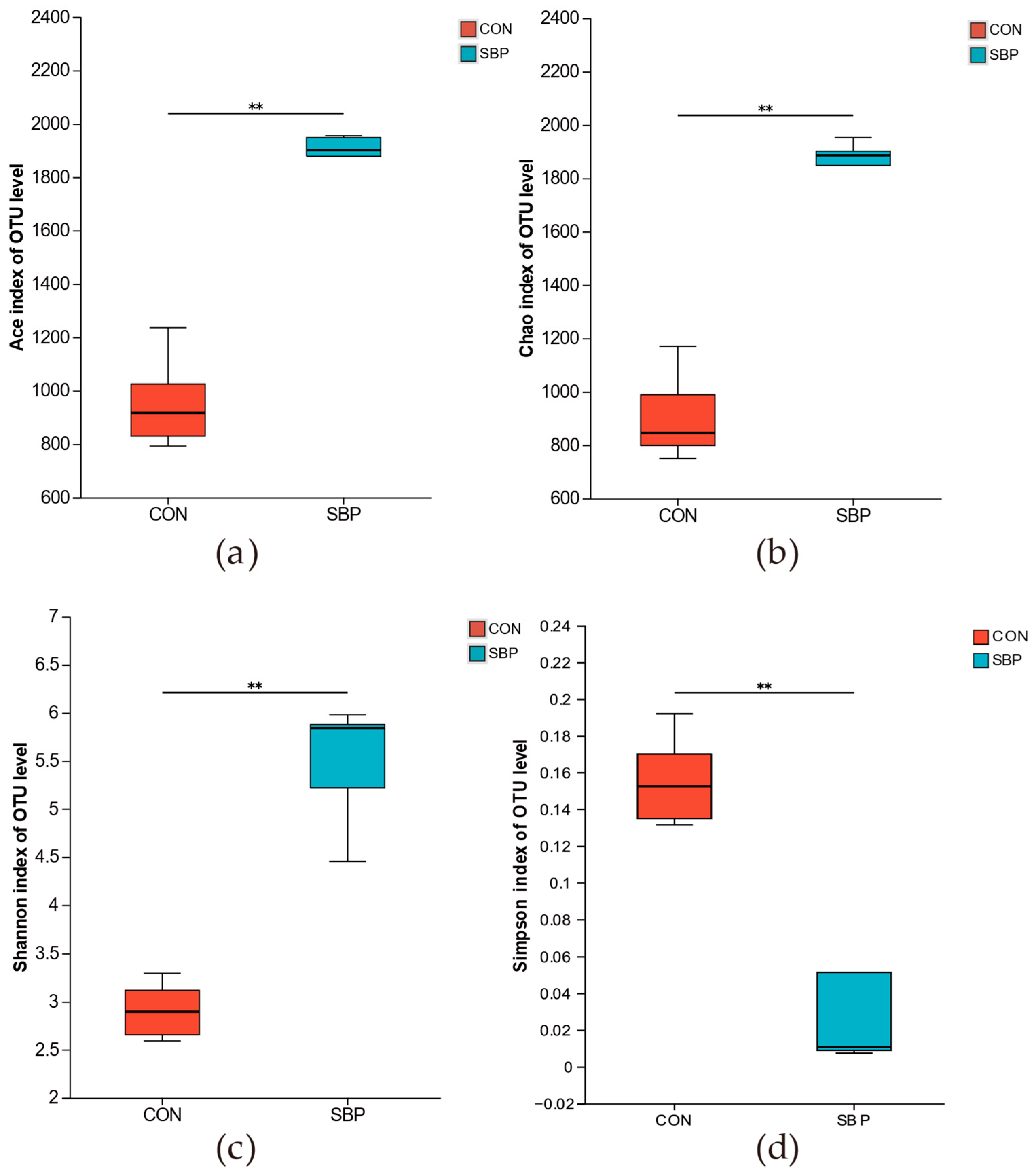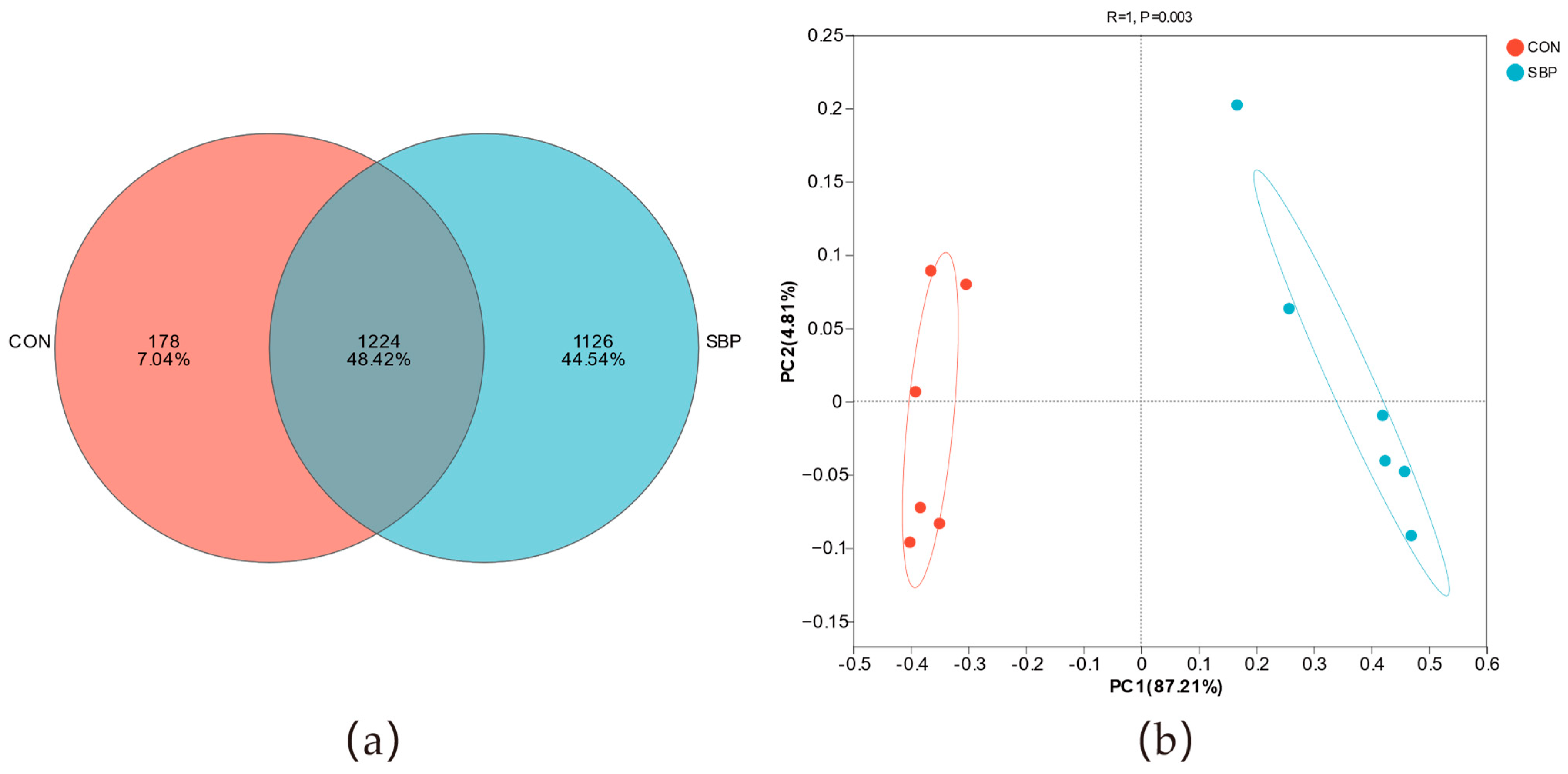 3.3. Effects of SBP on Rumen In Vitro Fermentation Microbial Community Diversity of Hu Sheep