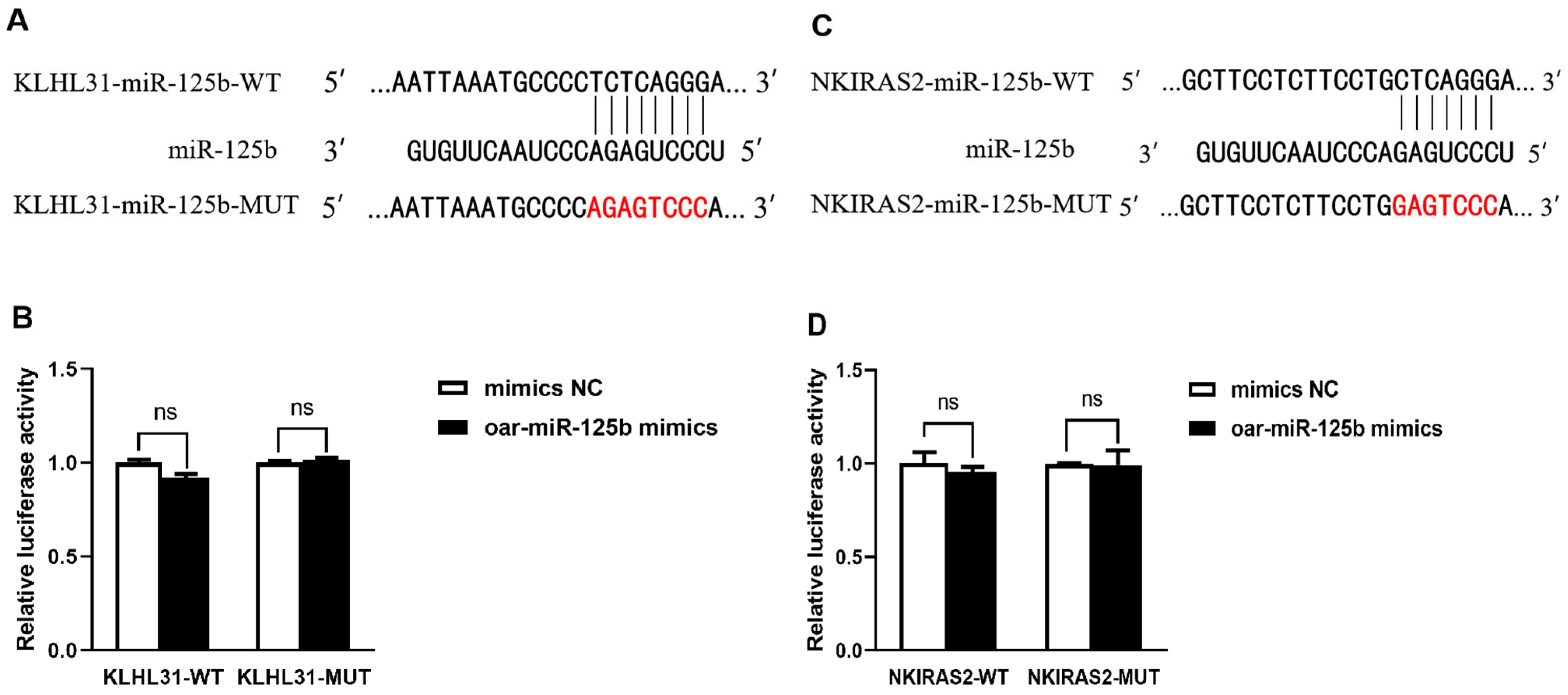 3.3. KLHL31 and NKIRAS2 Were Confirmed Not to Be Direct Targets of Sheep oar-miR-125b
