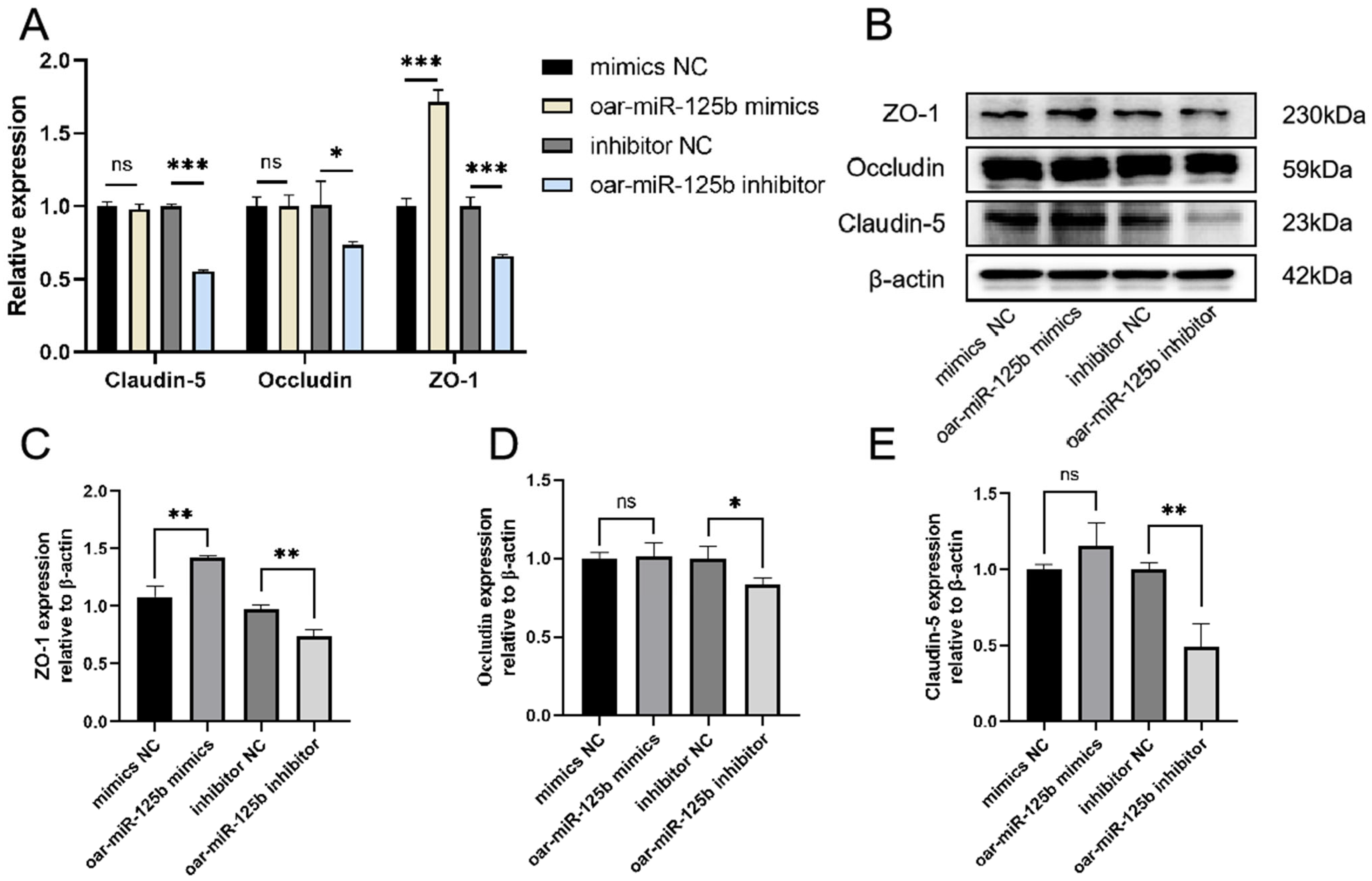 3.5. oar-miR-125b Is a Positive Regulator of Blood–Brain Barrier Integrity
