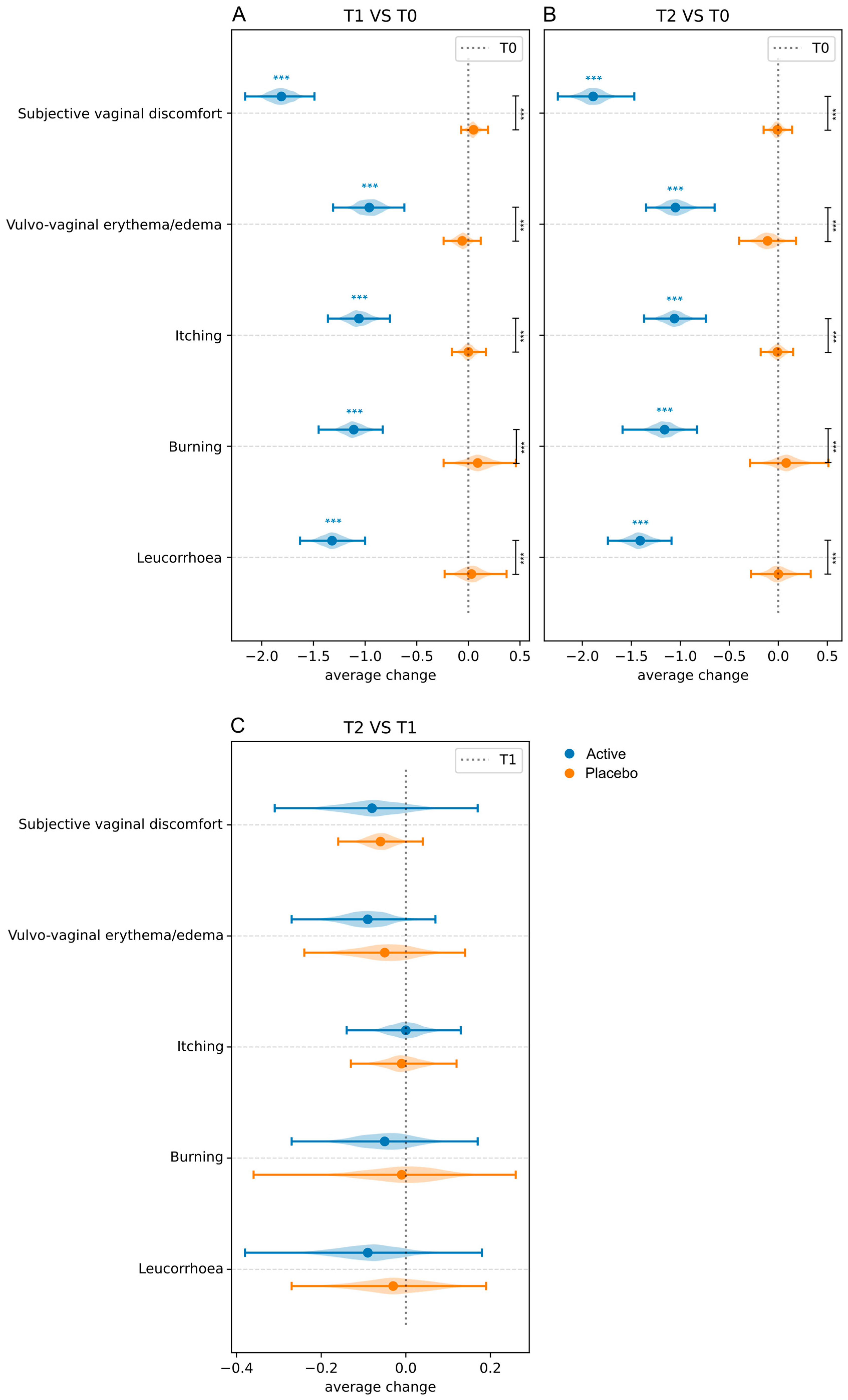 - Rapisarda, A.M.C.; Pino, A.; Grimaldi, R.L.; Caggia, C.; Randazzo, C.L.; Cianci, A. Lacticaseibacillus rhamnosus CA15 (DSM 33960) strain as a new driver in restoring the normal vaginal microbiota: A randomized, double-blind, placebo-controlled clinical trial. Front. Surg. 2023, 9, 1075612. [Google Scholar] [CrossRef] [PubMed]