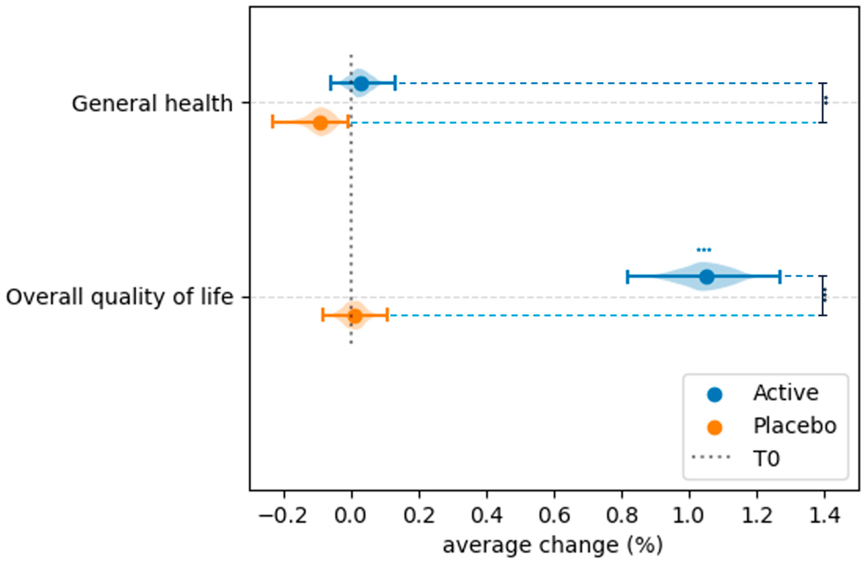 3.4. Effect of Probiotic and Placebo Treatment on the Perceived Quality of Life