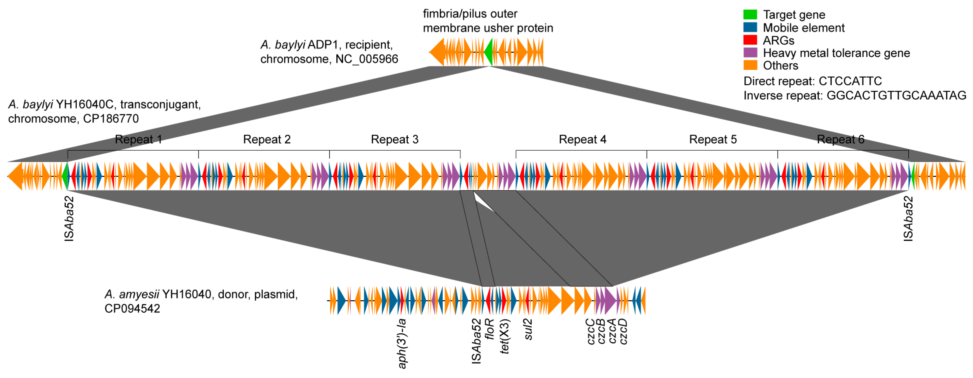 Chen, C.; Liu, J.; Gao, J.; Hua, Y.; Wu, T.; Huang, J. Transfer and Fitness of ISAba52-Mediated tet(X3) Transposon in Acinetobacter spp. Microorganisms 2025, 13, 2656. https://doi.org/10.3390/microorganisms13122656