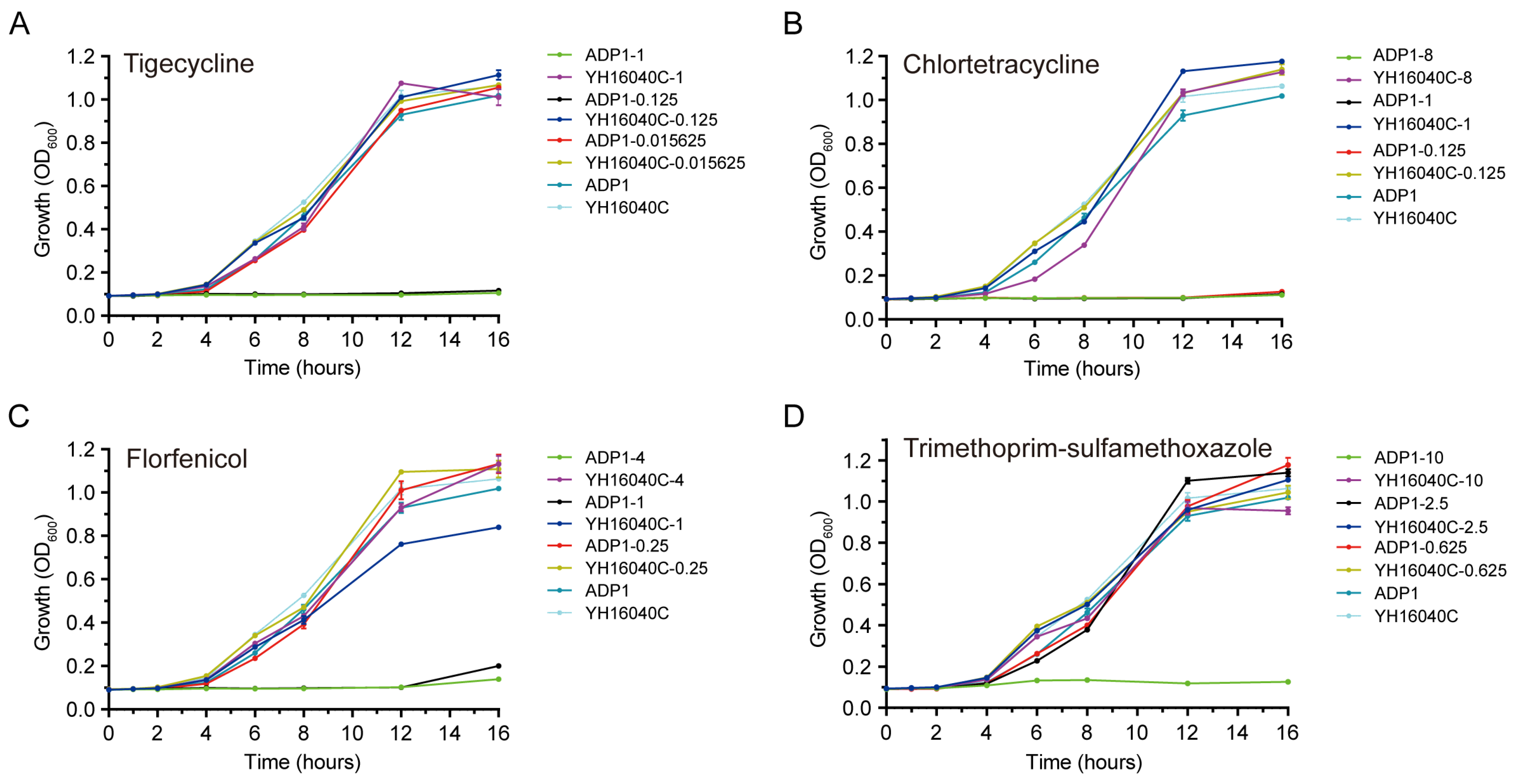 - Hua, X.; He, J.; Wang, J.; Zhang, L.; Zhang, L.; Xu, Q.; Shi, K.; Leptihn, S.; Shi, Y.; Fu, X.; et al. Novel tigecycline resistance mechanisms in Acinetobacter baumannii mediated by mutations in adeS, rpoB and rrf. Emerg. Microbes Infect. 2021, 10, 1404–1417. [Google Scholar] [CrossRef]