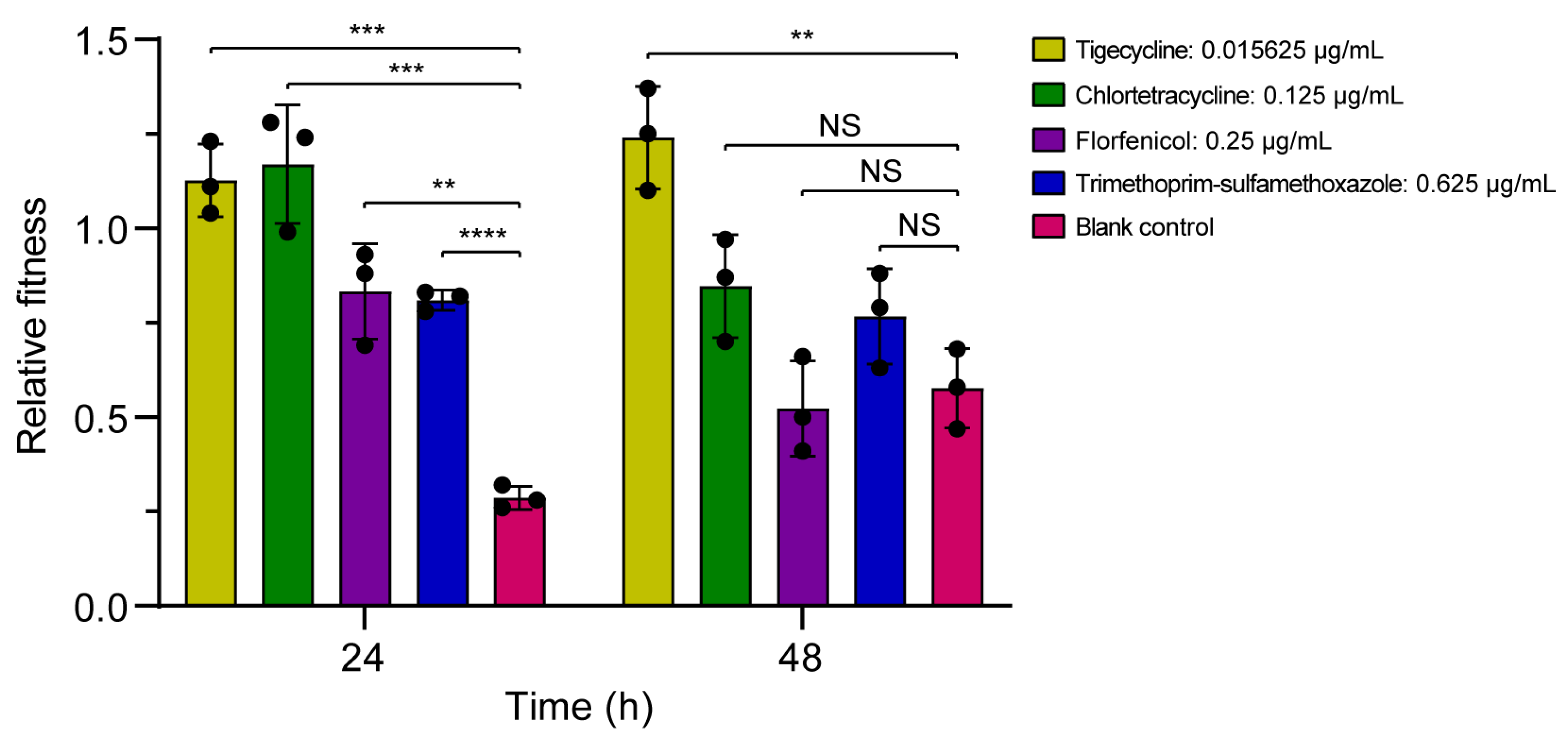 - Jiang, L.; Cai, W.; Tang, F.; Wang, Z.; Liu, Y. Characterization of Fitness Cost Caused by Tigecycline-Resistance Gene tet(X6) in Different Host Bacteria. Antibiotics 2021, 10, 1172. [Google Scholar] [CrossRef]