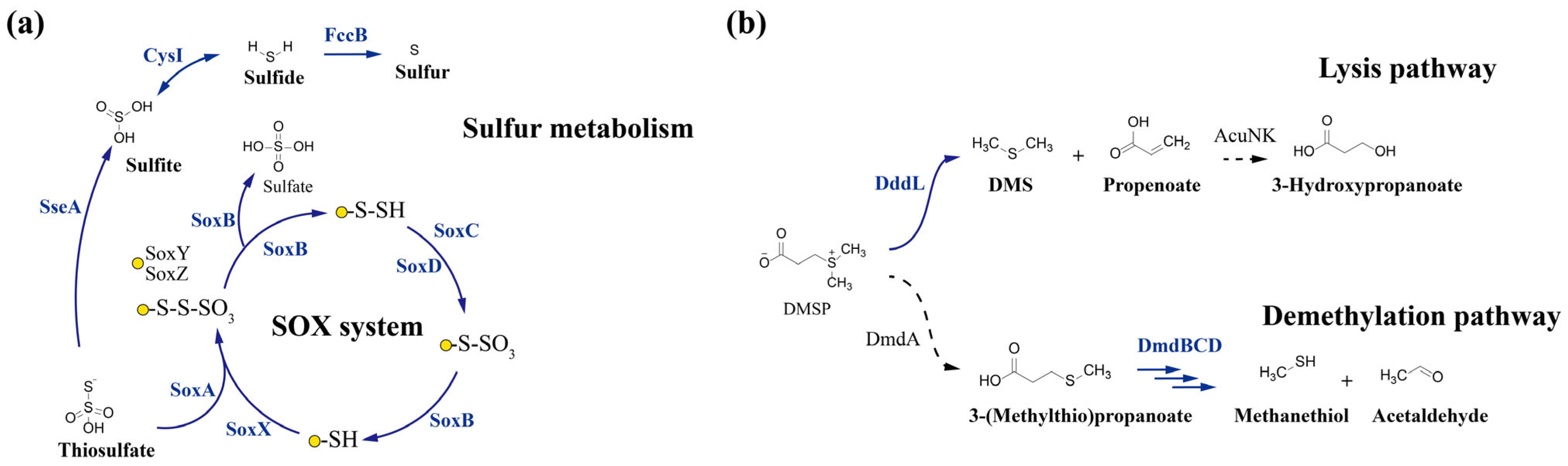 3.5.3. Sulfite Oxidation and DMSP Degradation Pathways