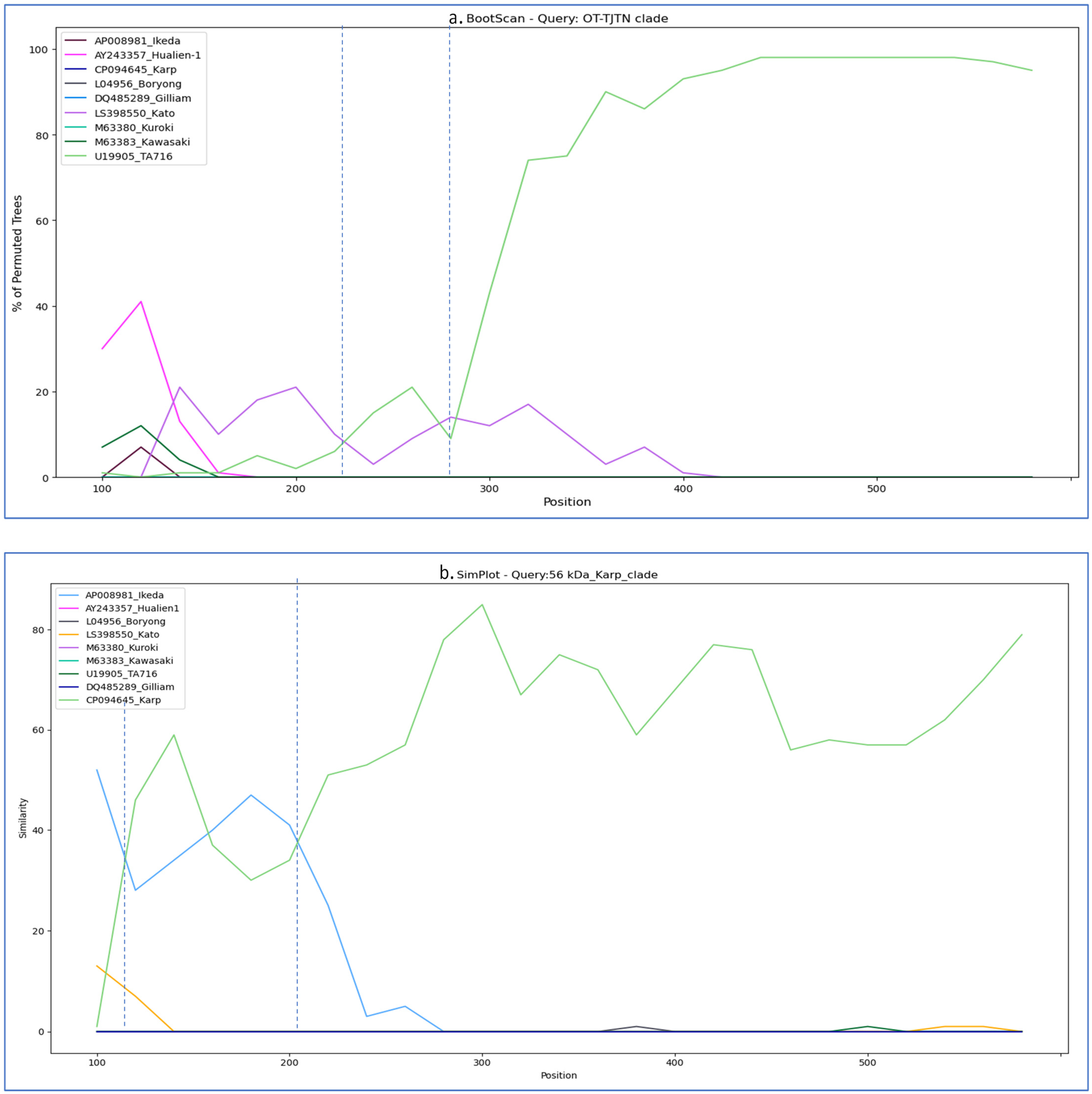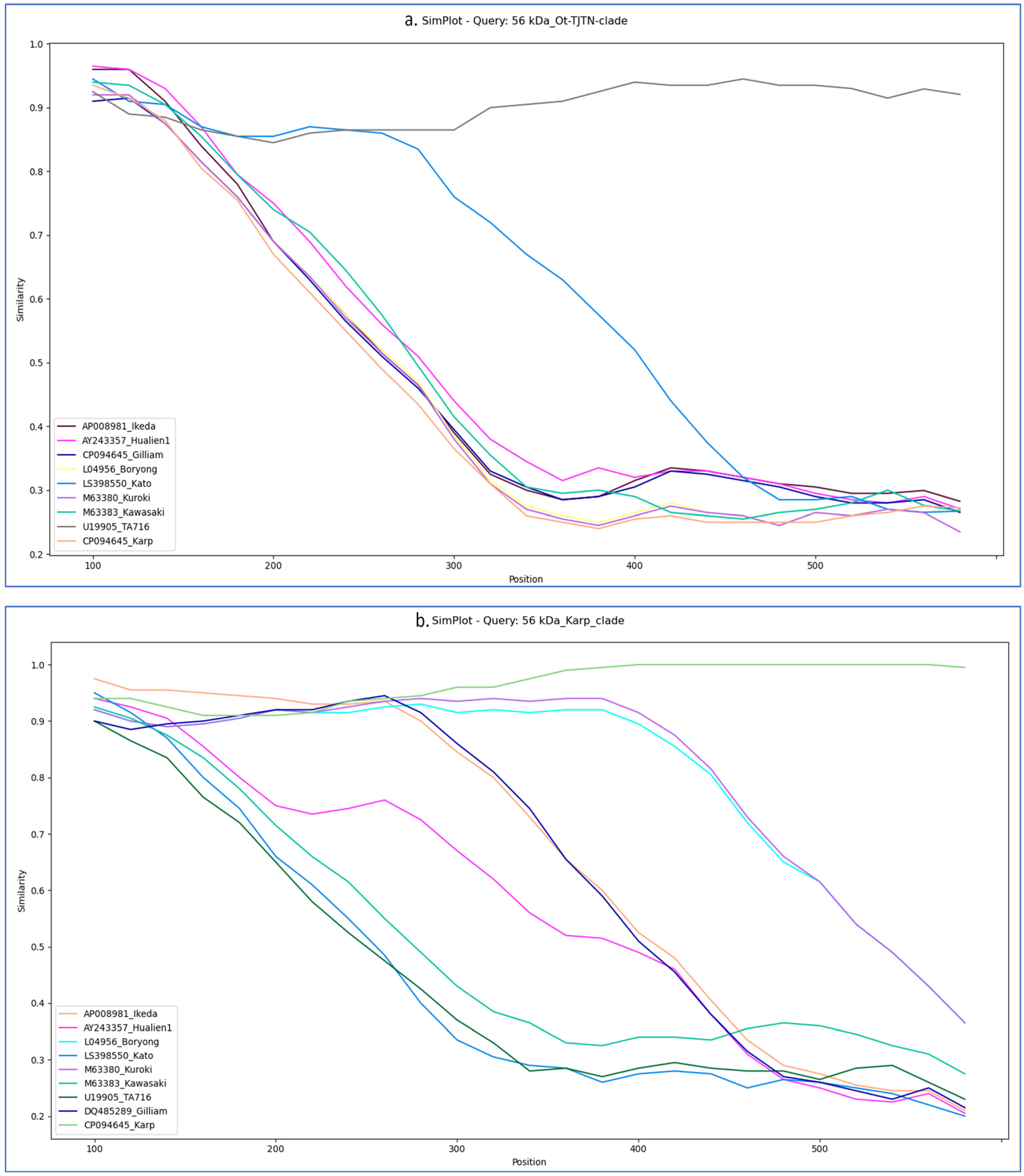 2.3.5. Similarity and Bootscan Analysis of 56-kDa Sequences