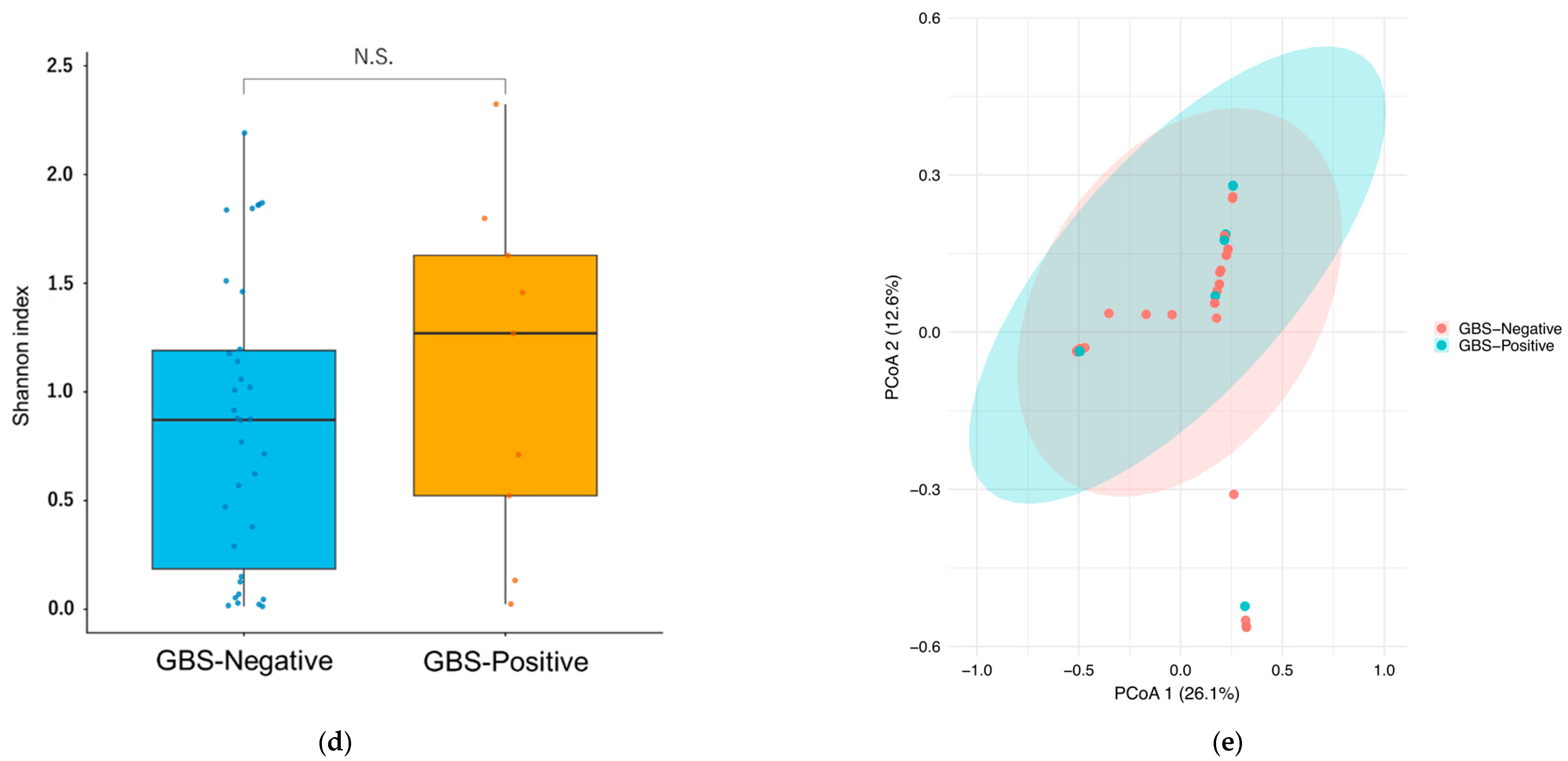 Chicago/Turabian StyleSong, Shuang, Kaori Iino, Mako Nakamura, Maki Sato, Maika Oishi, Asami Ito, and Yoshihito Yokoyama. 2025. "Comparative Characterization of Vaginal and Gut Microbiota in Late-Pregnancy Women with or Without Group B Streptococcus Colonization" Microorganisms 13, no. 12: 2671. https://doi.org/10.3390/microorganisms13122671
