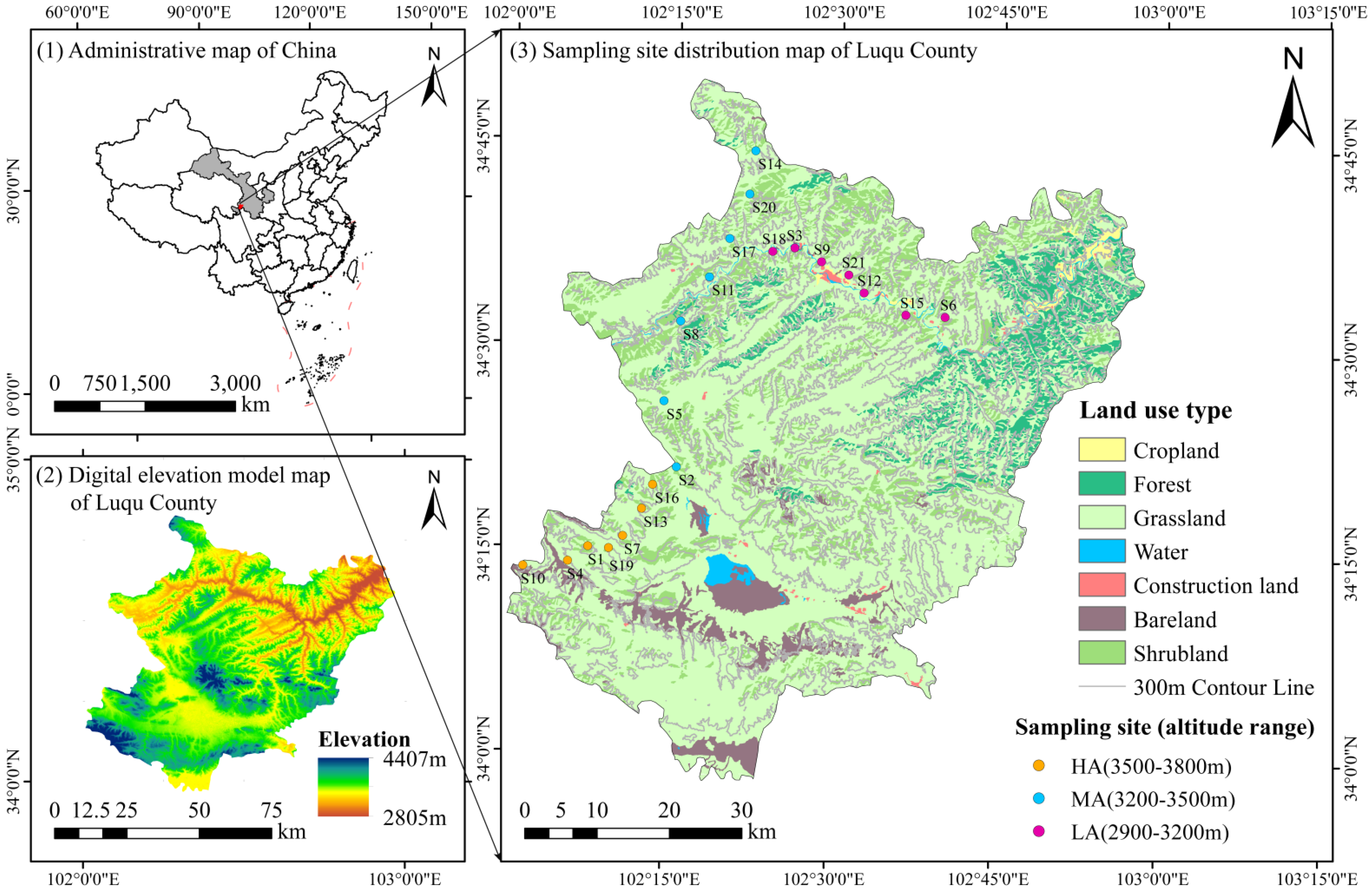 | S3 | Elymus dahuricus | 3122 | 102°25′57″ E, 34°37′23″ N |