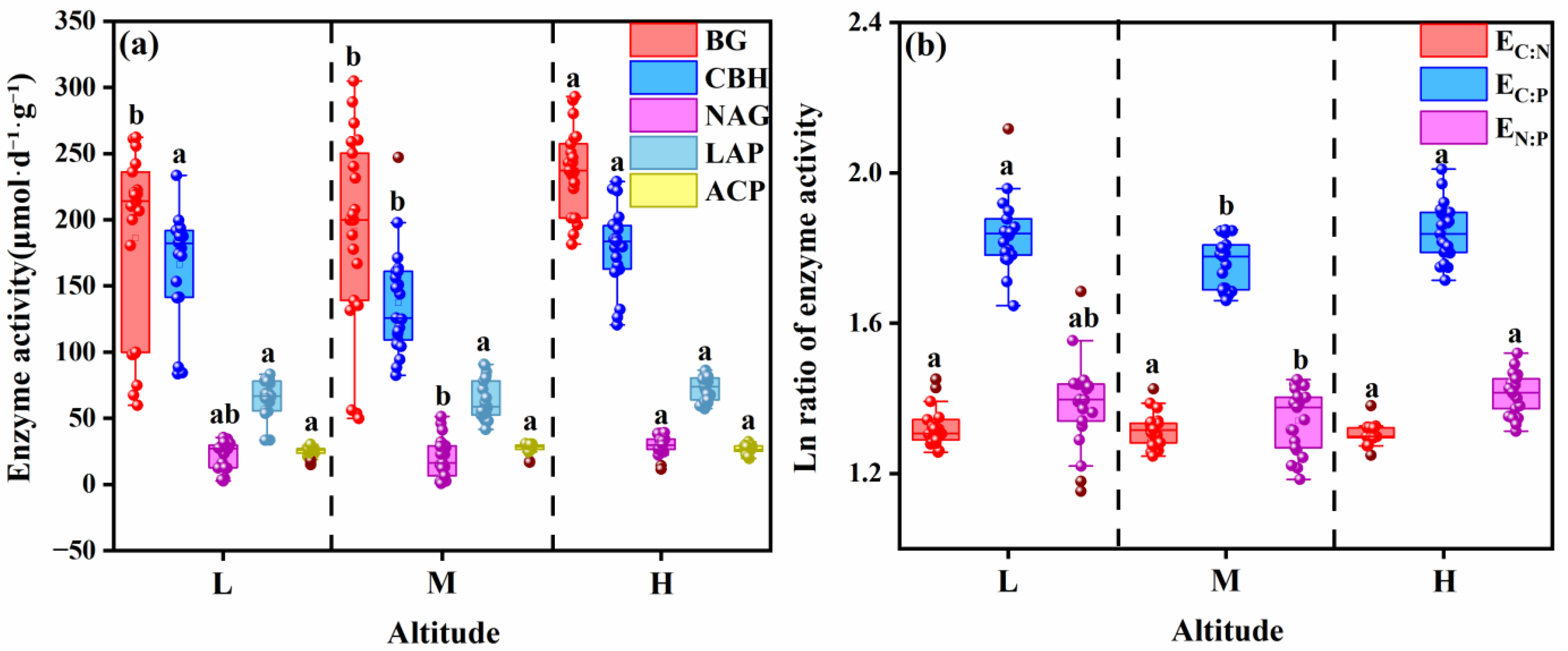 - Zhou, L.; Liu, S.; Shen, H.; Zhao, M.; Xu, L.; Xing, A.; Fang, J.; Sayer, E. Soil extracellular enzyme activity and stoichiometry in China’s forests. Funct. Ecol. 2020, 34, 1461–1471. [Google Scholar] [CrossRef]