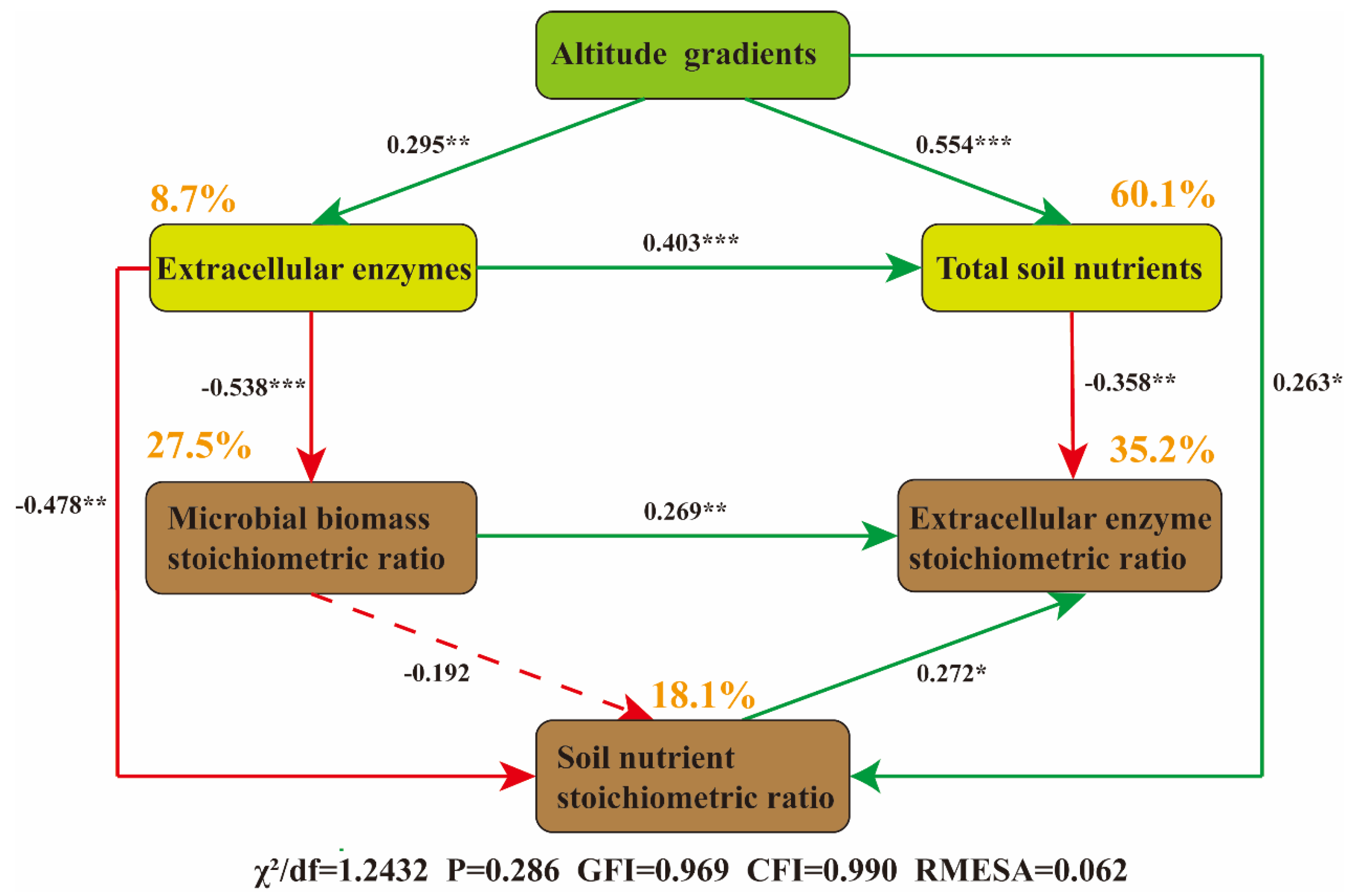 4.2. Microbial Nutrient Limitation Along the Altitudinal Gradient