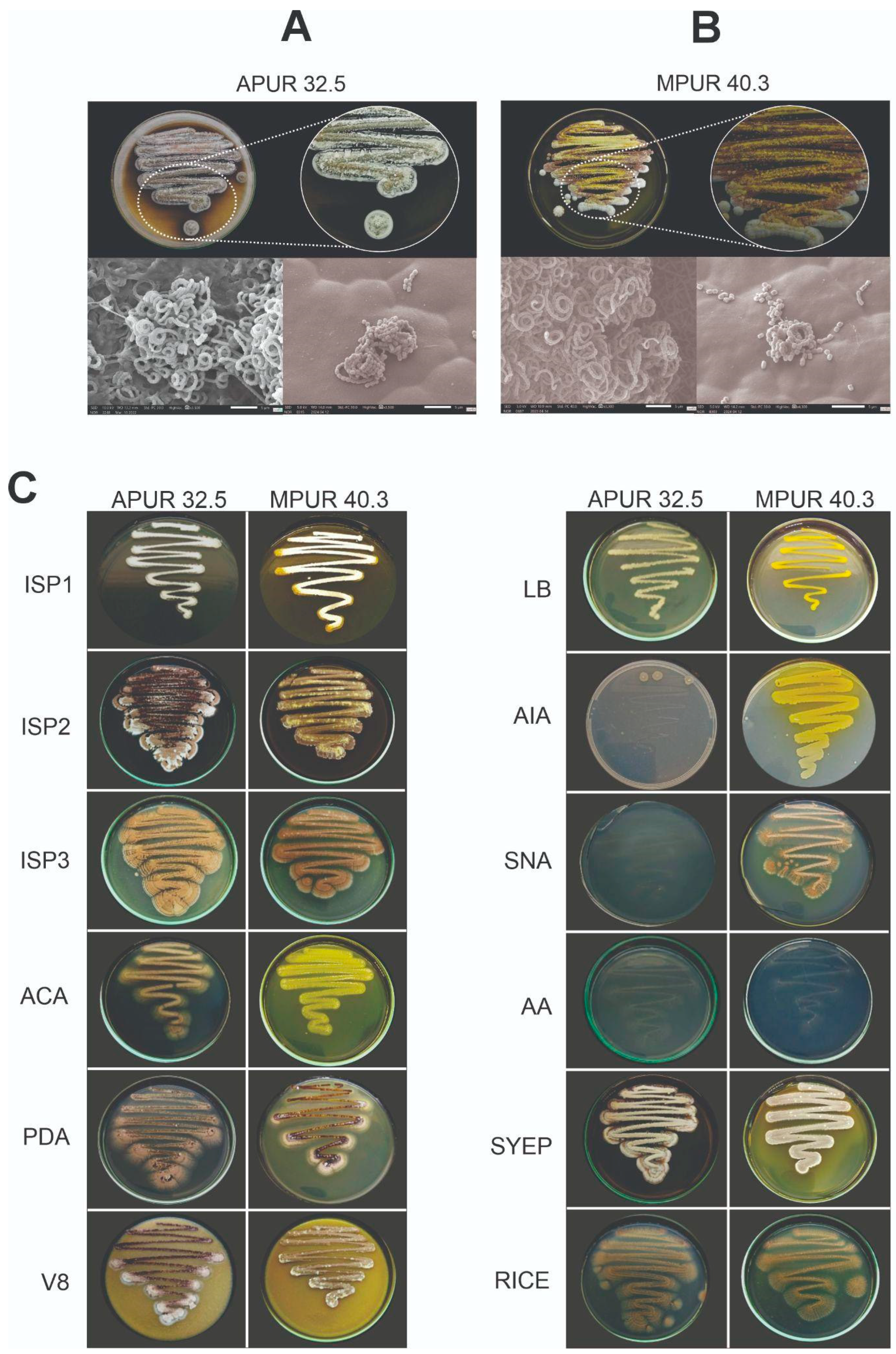 - Shirling, E.B.; Gottlieb, D. Methods for characterization of Streptomyces species. Int. J. Syst. Evol. Microbiol. 1966, 16, 313–340. [Google Scholar] [CrossRef]