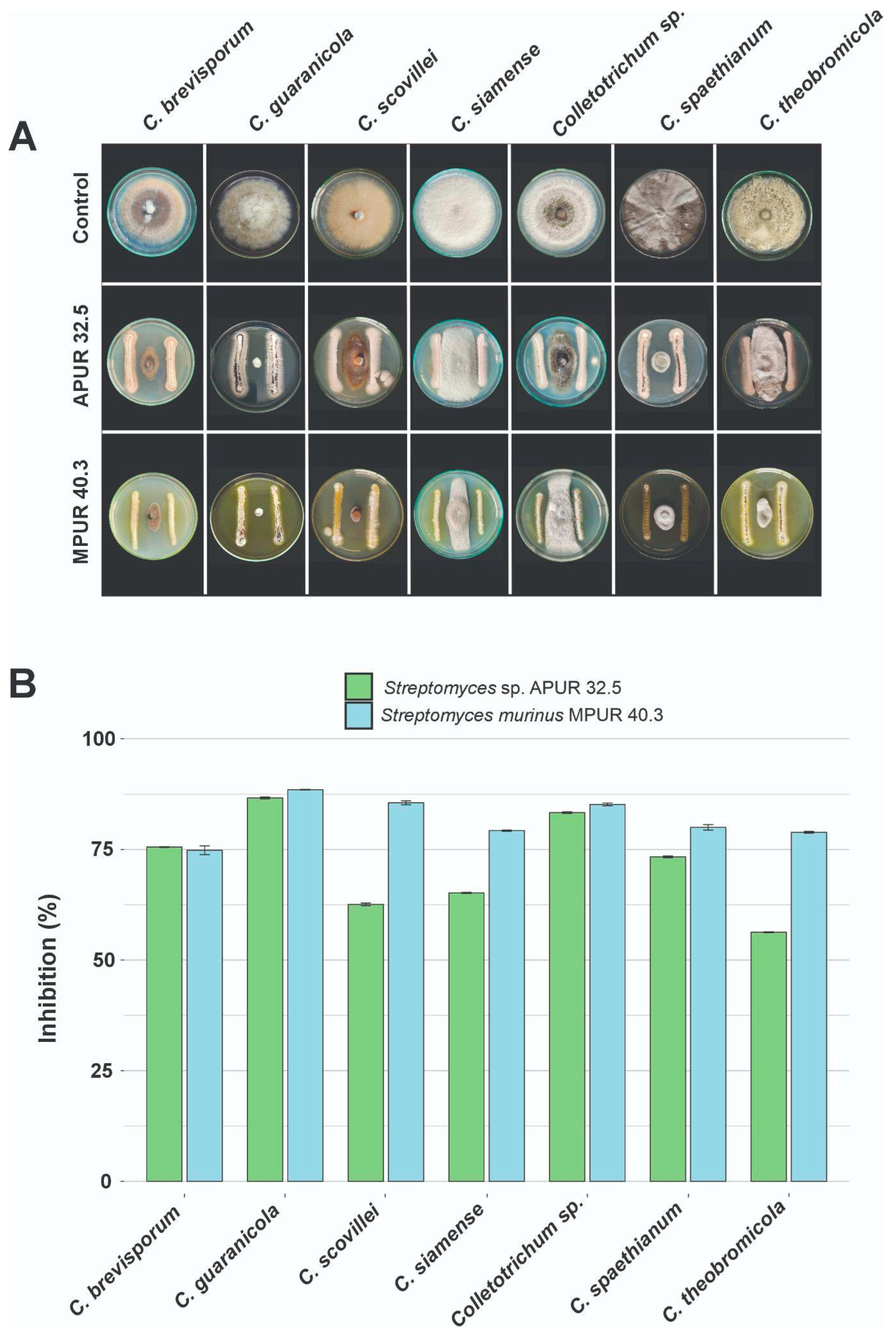 - Evangelista-Martínez, Z.; Torres, M.; Hernández, L.; Reyes, A. Potential of Streptomyces sp. strain AGS-58 in controlling anthracnose-causing Colletotrichum siamense from post-harvest mango fruits. J. Plant Pathol. 2022, 104, 553–563. [Google Scholar] [CrossRef]