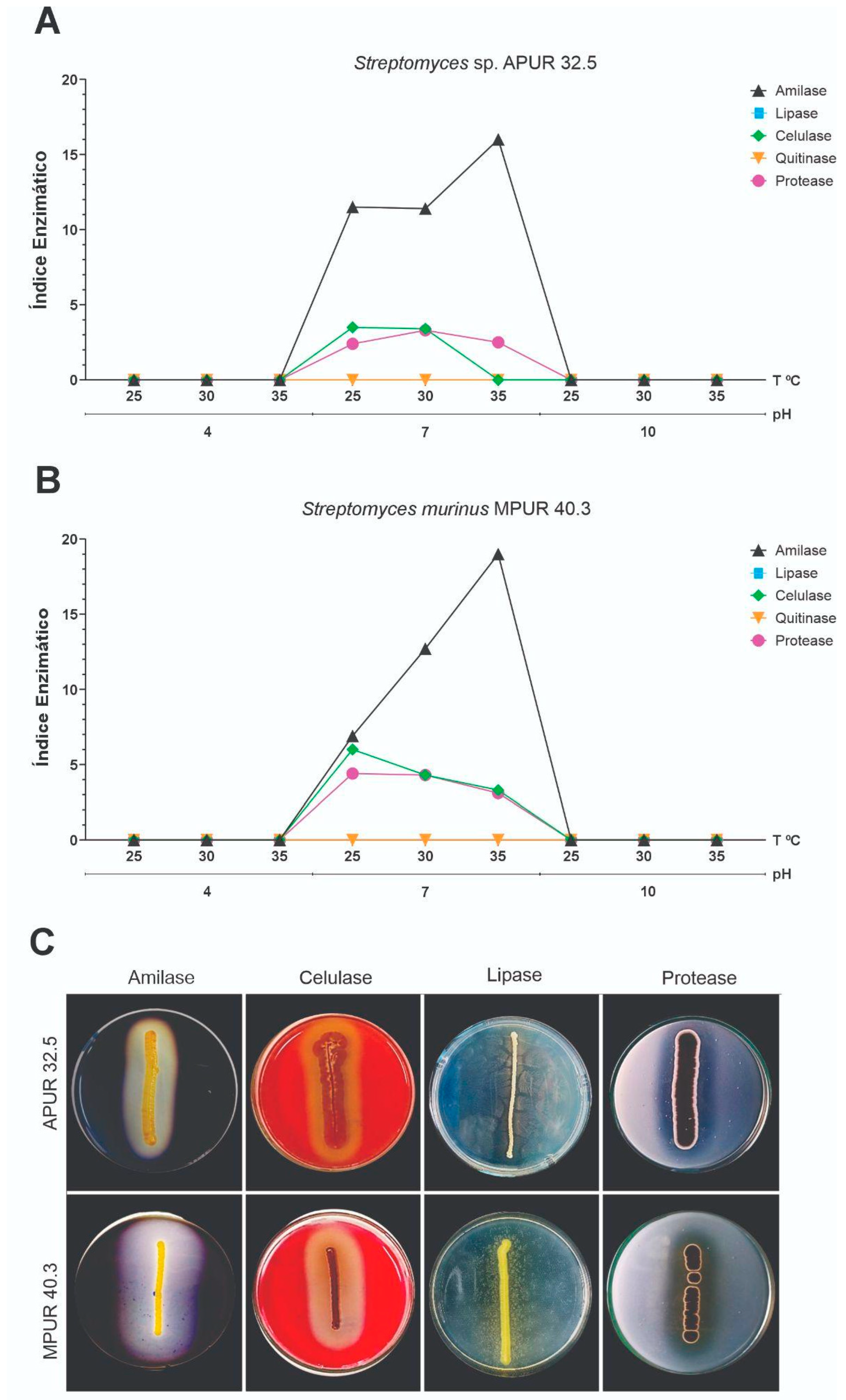 - Kumar, M.; Singh, V.; Sharma, R. Potential applications of extracellular enzymes from Streptomyces spp. in various industries. Arch. Microbiol. 2020, 202, 1597–1615. [Google Scholar] [CrossRef]