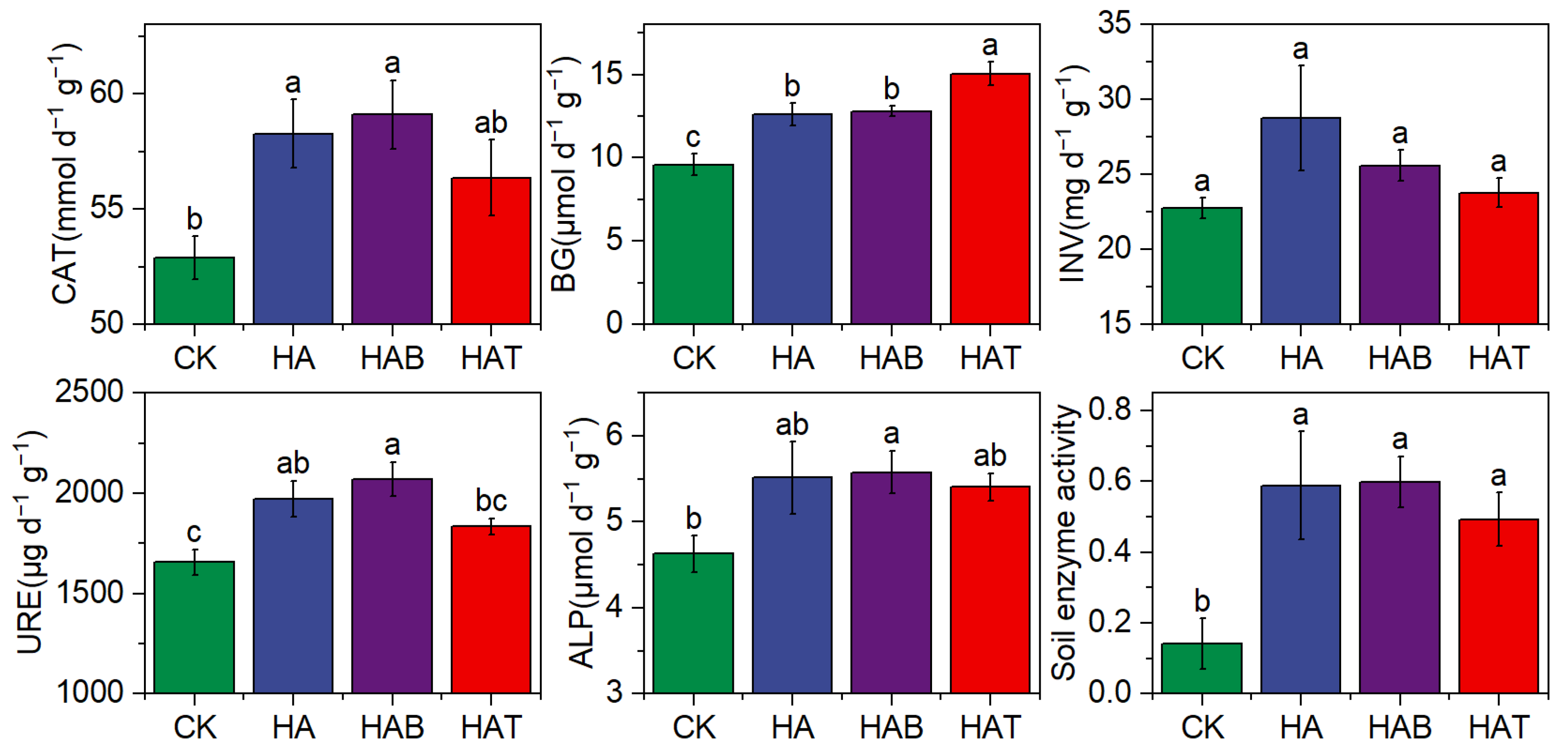 | Year | Treatment | CK | HA | HAB | HAT |