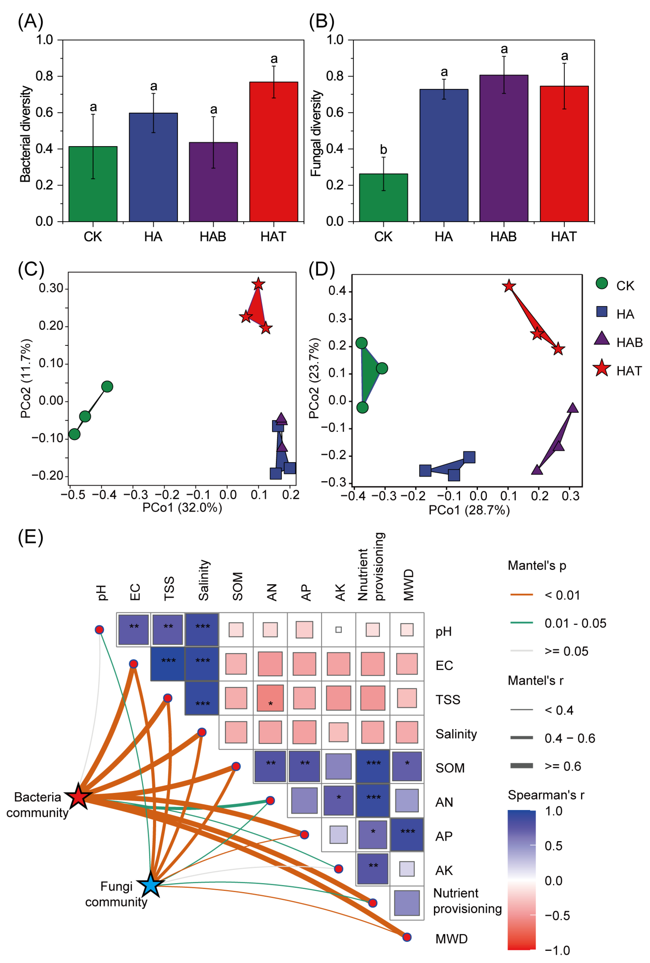 4.3. Effects of Humic Acid and Microbial Fertilizers on Soil Biological Reorganization