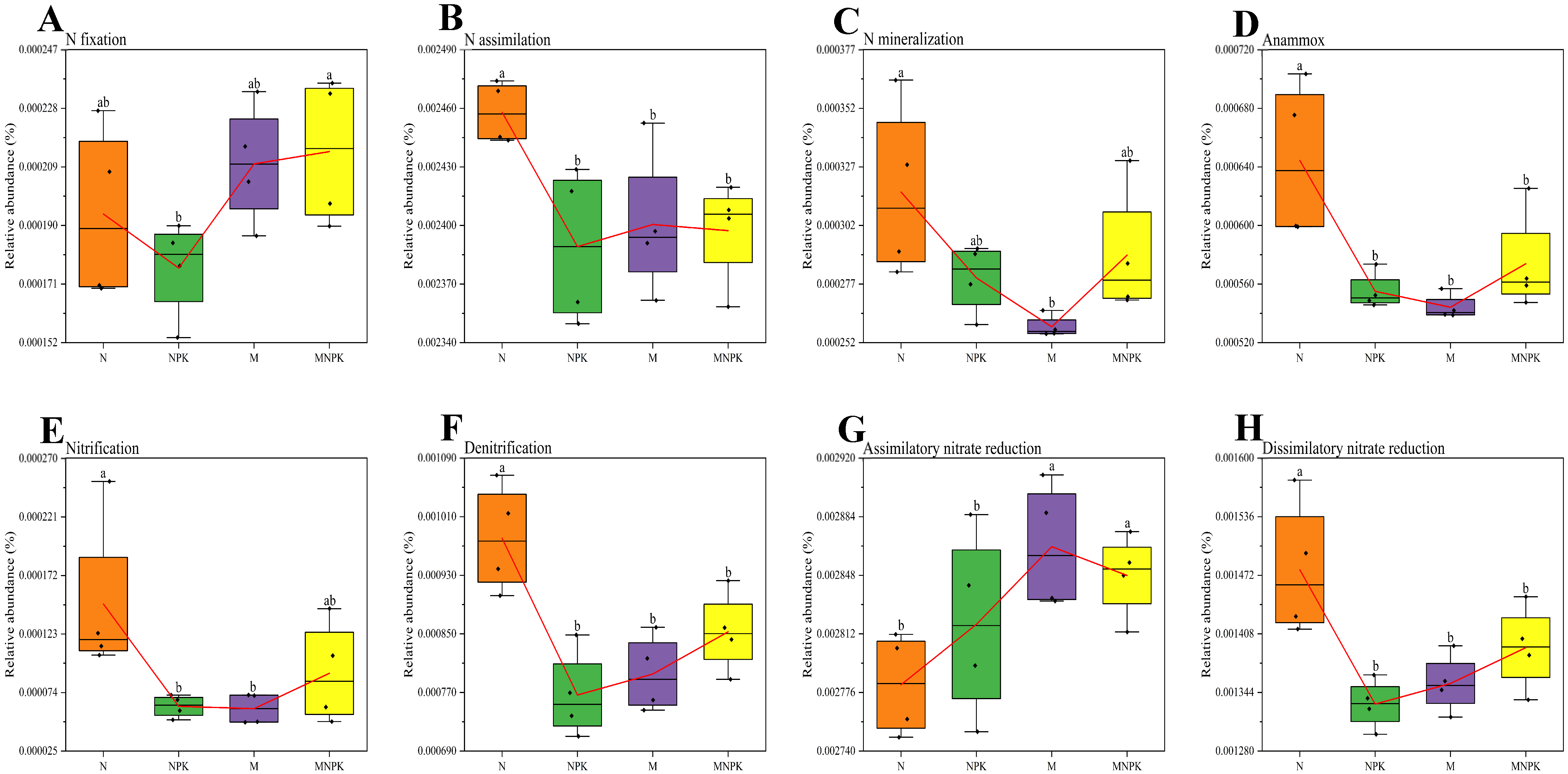 4.2. Responses of N-Cycling Enzyme-Encoding Genes to Different Fertilization Treatments