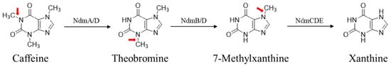 - Summers, R.M.; Louie, T.M.; Yu, C.L.; Subramanian, M. Characterization of a Broad-Specificity Non-Haem Iron N-Demethylase from Pseudomonas Putida CBB5 Capable of Utilizing Several Purine Alkaloids as Sole Carbon and Nitrogen Source. Microbiology 2011, 157, 583–592. [Google Scholar] [CrossRef]