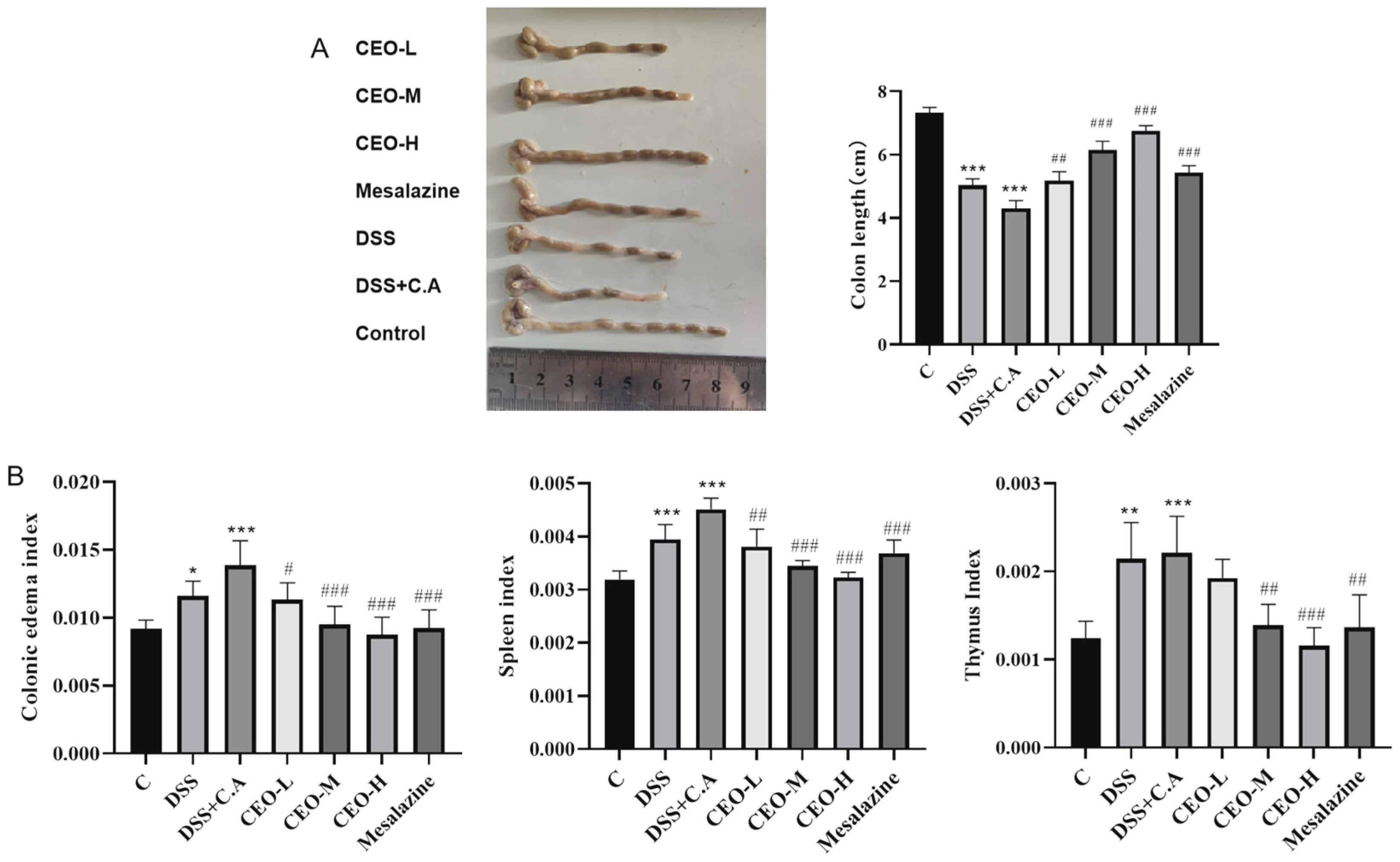 2.6. Colonic Edema, Weight to Length Ratio, and Immune Organ Index