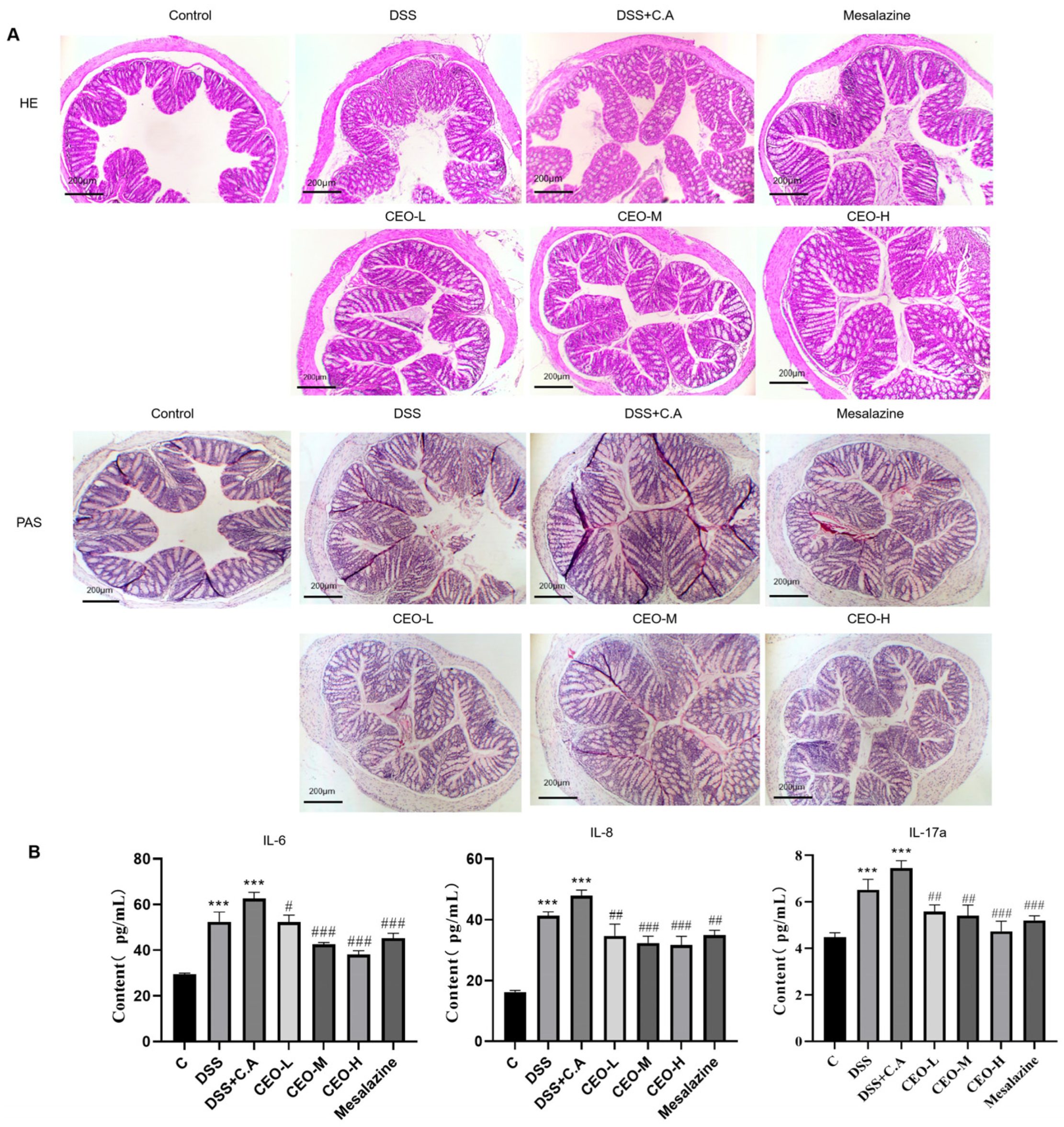 3.3. Effects of Cinnamon Essential Oil on Colon Tissue and Inflammatory Factors