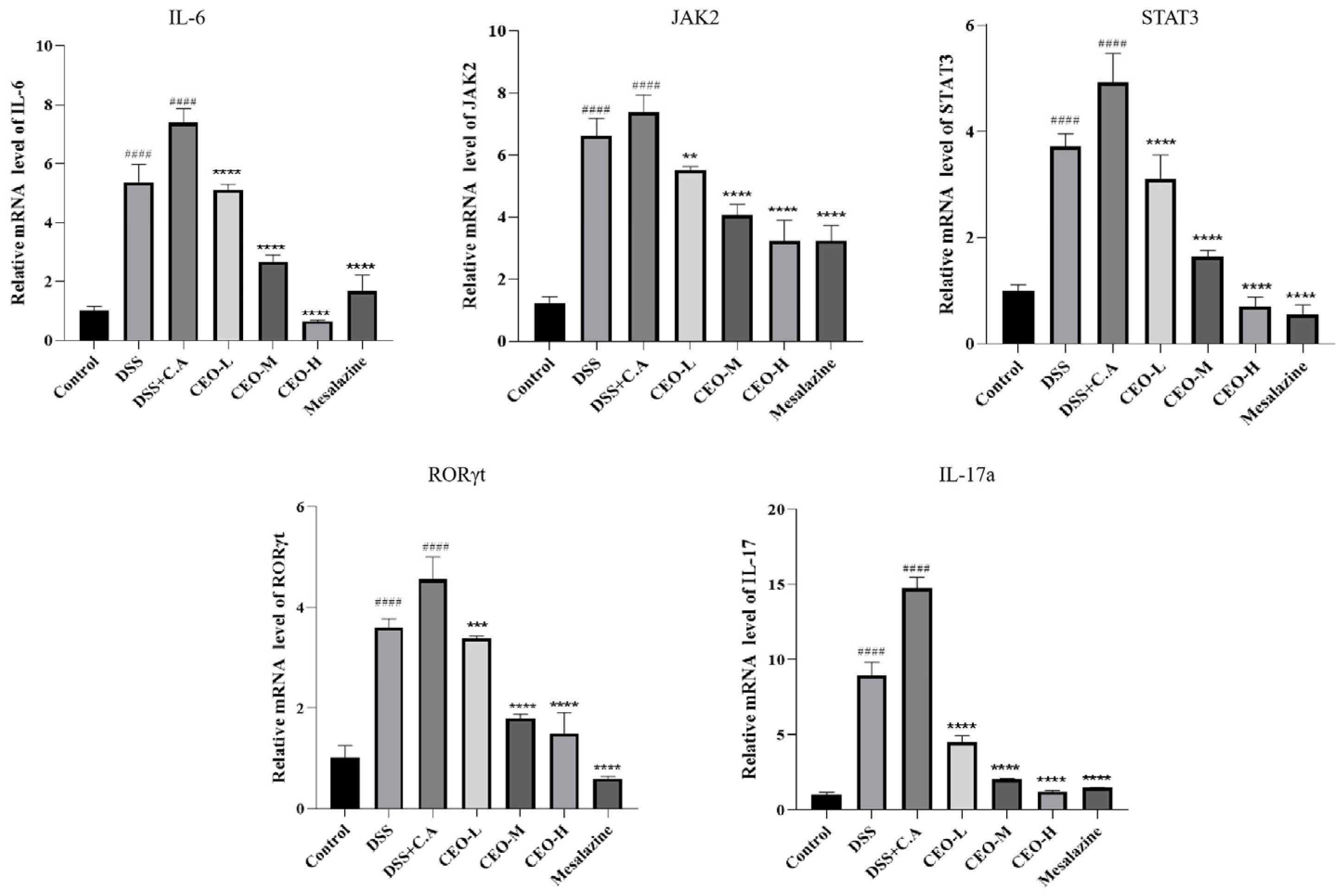 3.6. Cinnamon Essential Oil Effects on JAK2-STAT3 Signaling Pathway
