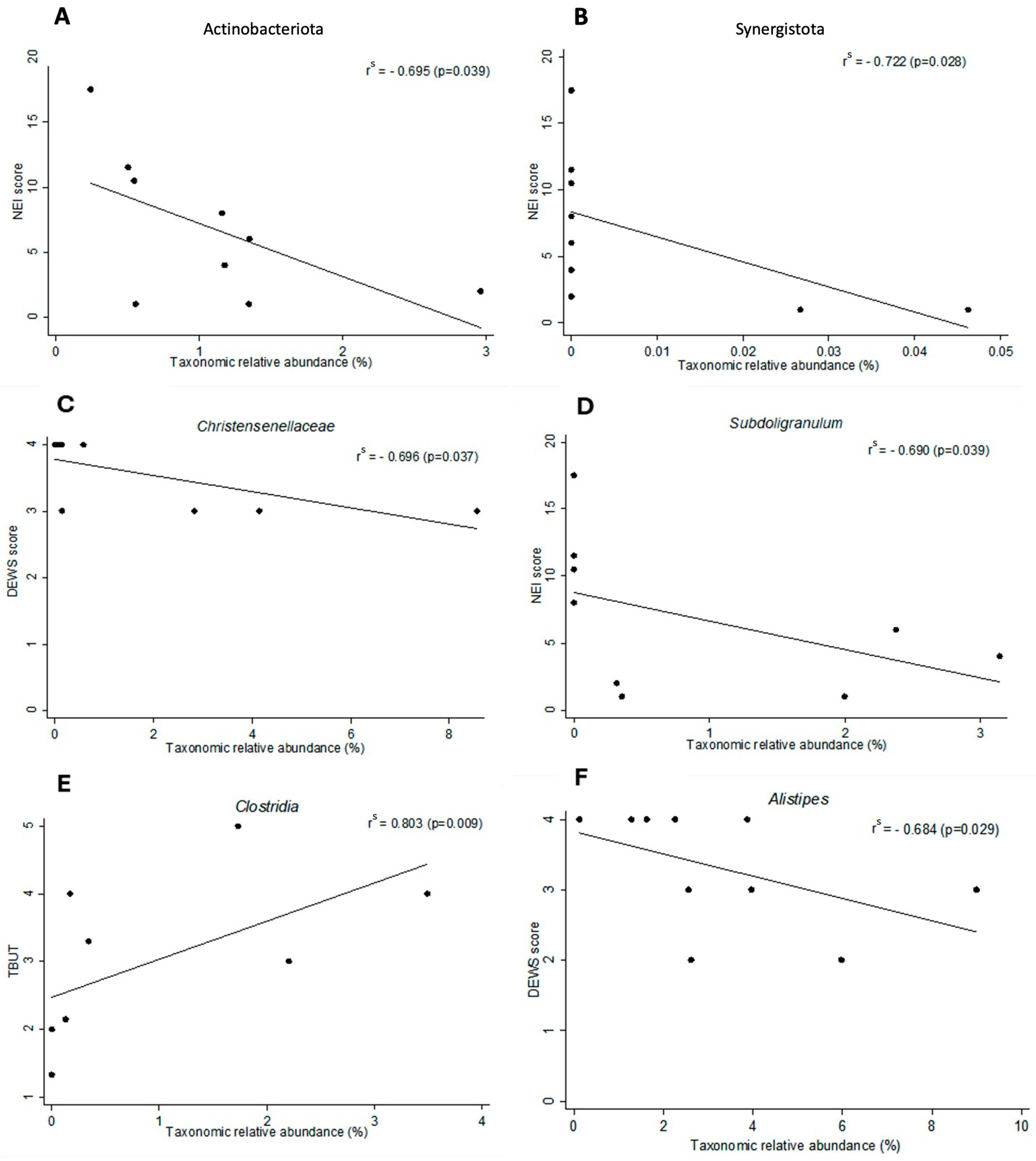 | Alistipes | 2.85 ± 2.27 (0.00 to 7.65) | 3.35 ± 2.91 (0.11 to 7.94) | 0.806 |