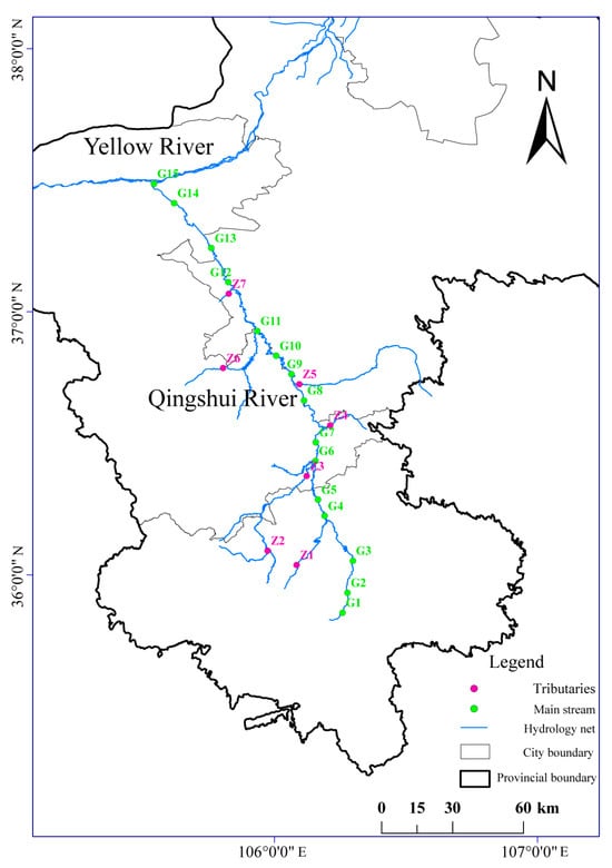 Distribution of sampling sites in the Qingshui River basin.
