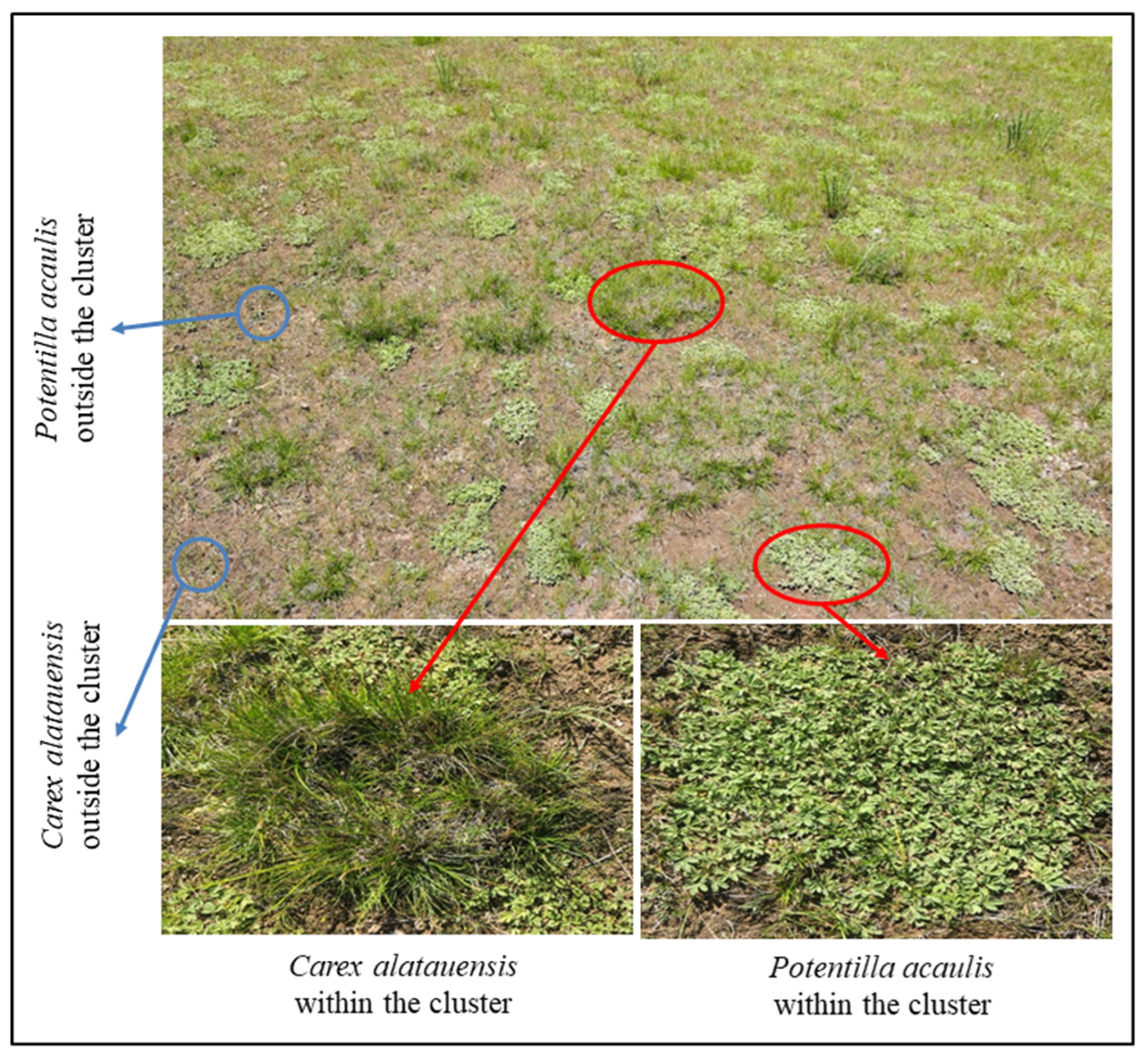4.2.1. Interactive Regulation of Grazing and Dominant Plant Clusters