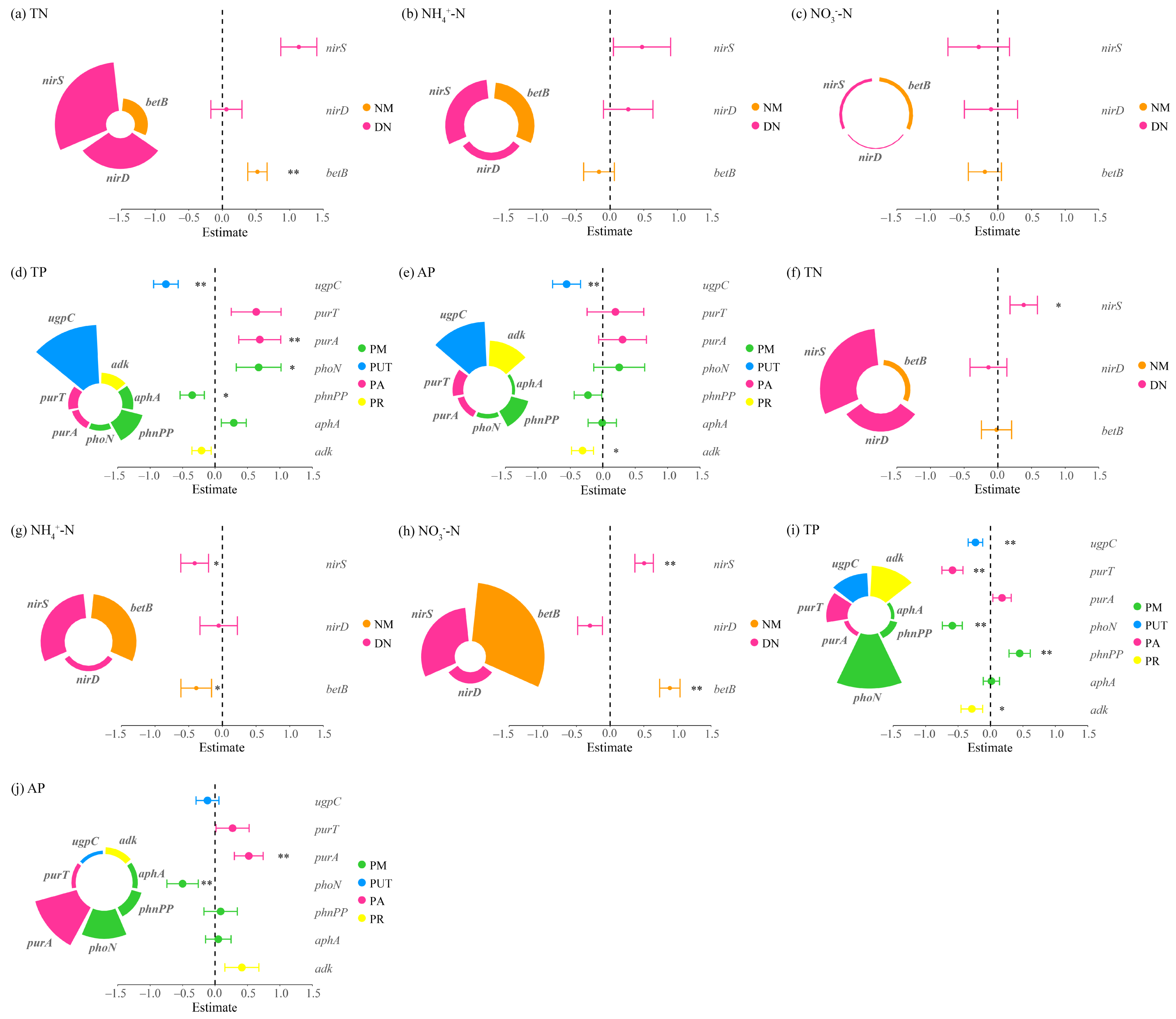 4.2.2. Differential Regulatory Pathways of N and P Cycling