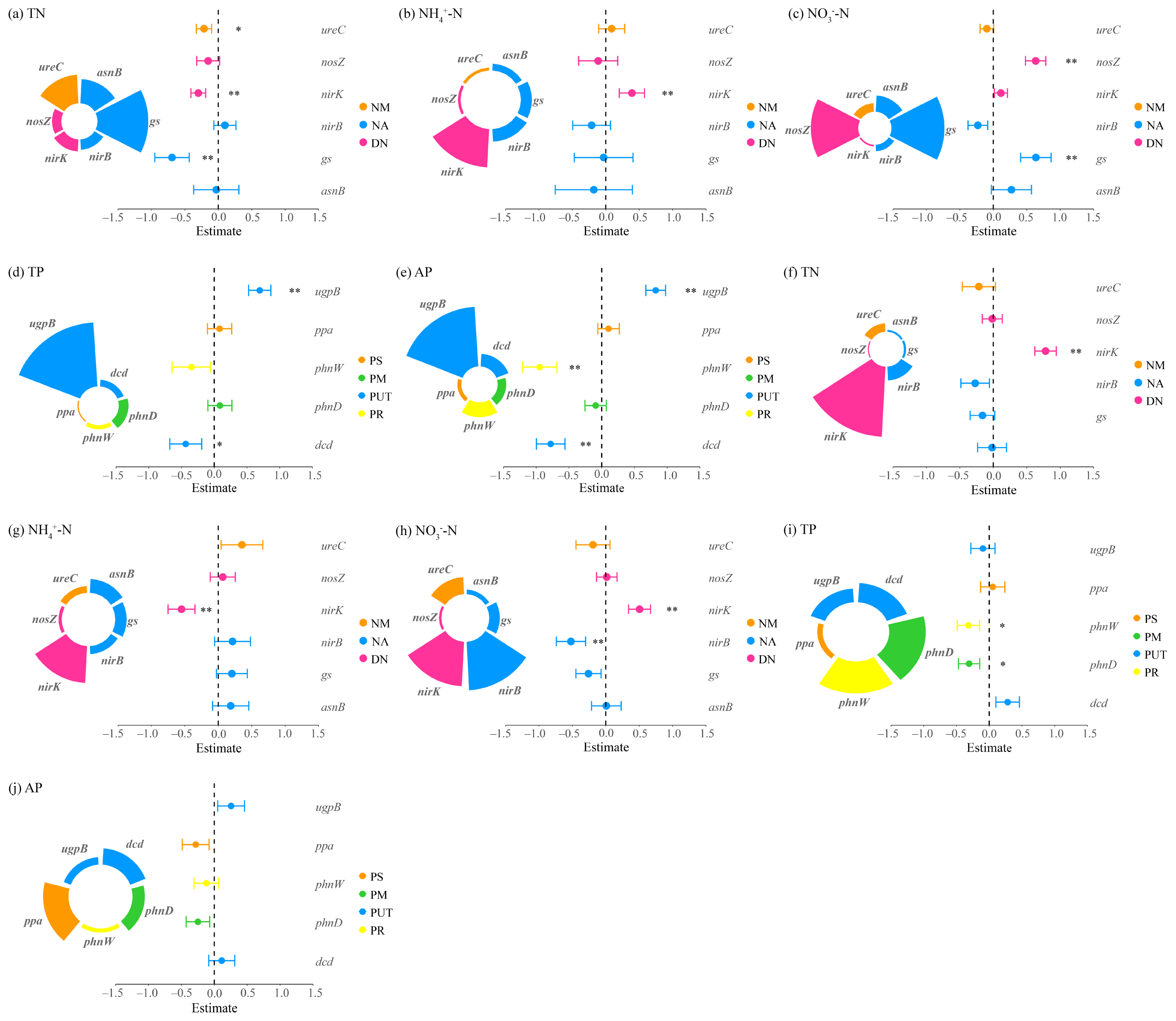3.2.1. Determinants of Nitrogen and Phosphorus Cycling