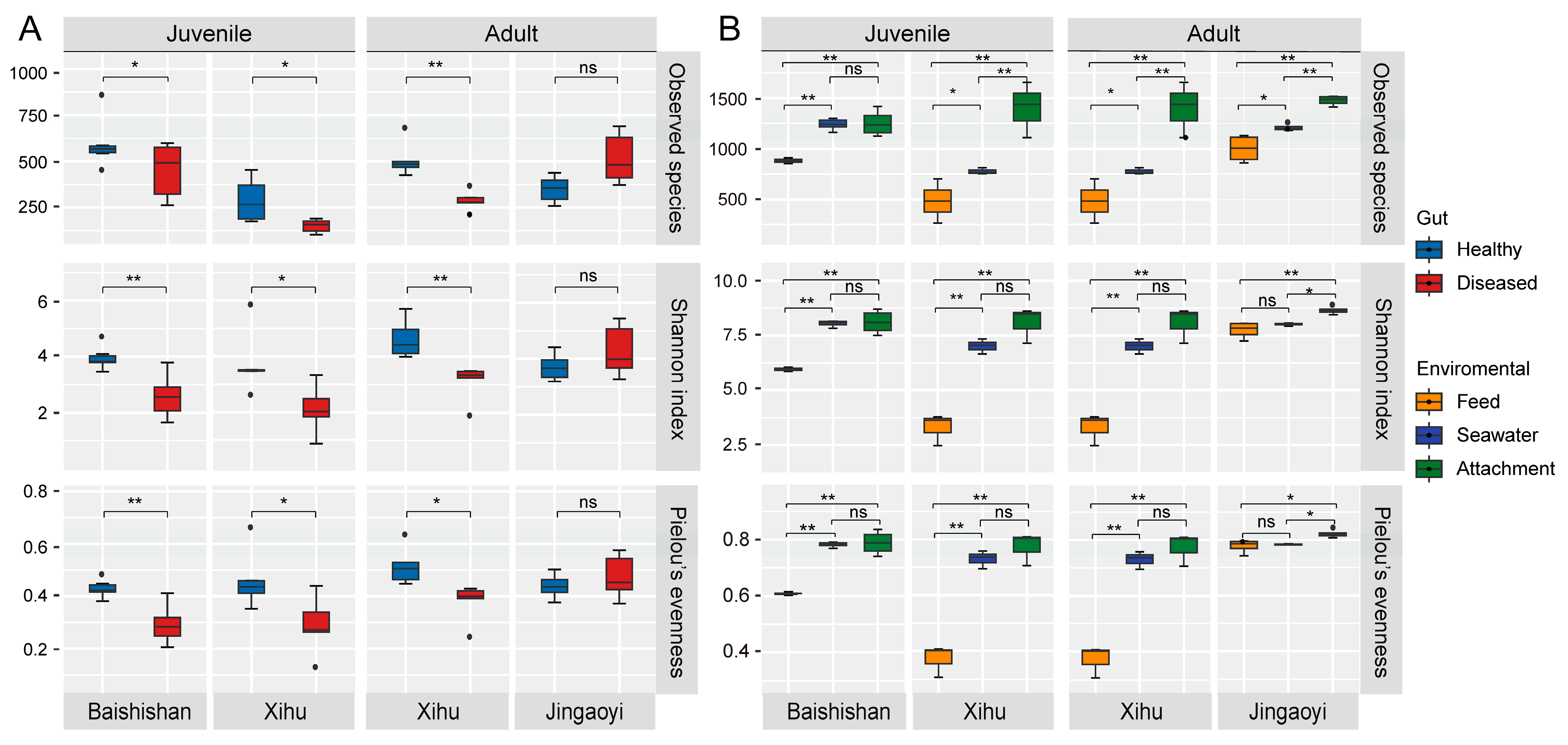 - Zhu, J.; Dai, W.; Qiu, Q.; Dong, C.; Zhang, J.; Xiong, J. Contrasting ecological processes and functional compositions between intestinal bacterial community in healthy and diseased shrimp. Microb. Ecol. 2016, 72, 975–985. [Google Scholar] [CrossRef]