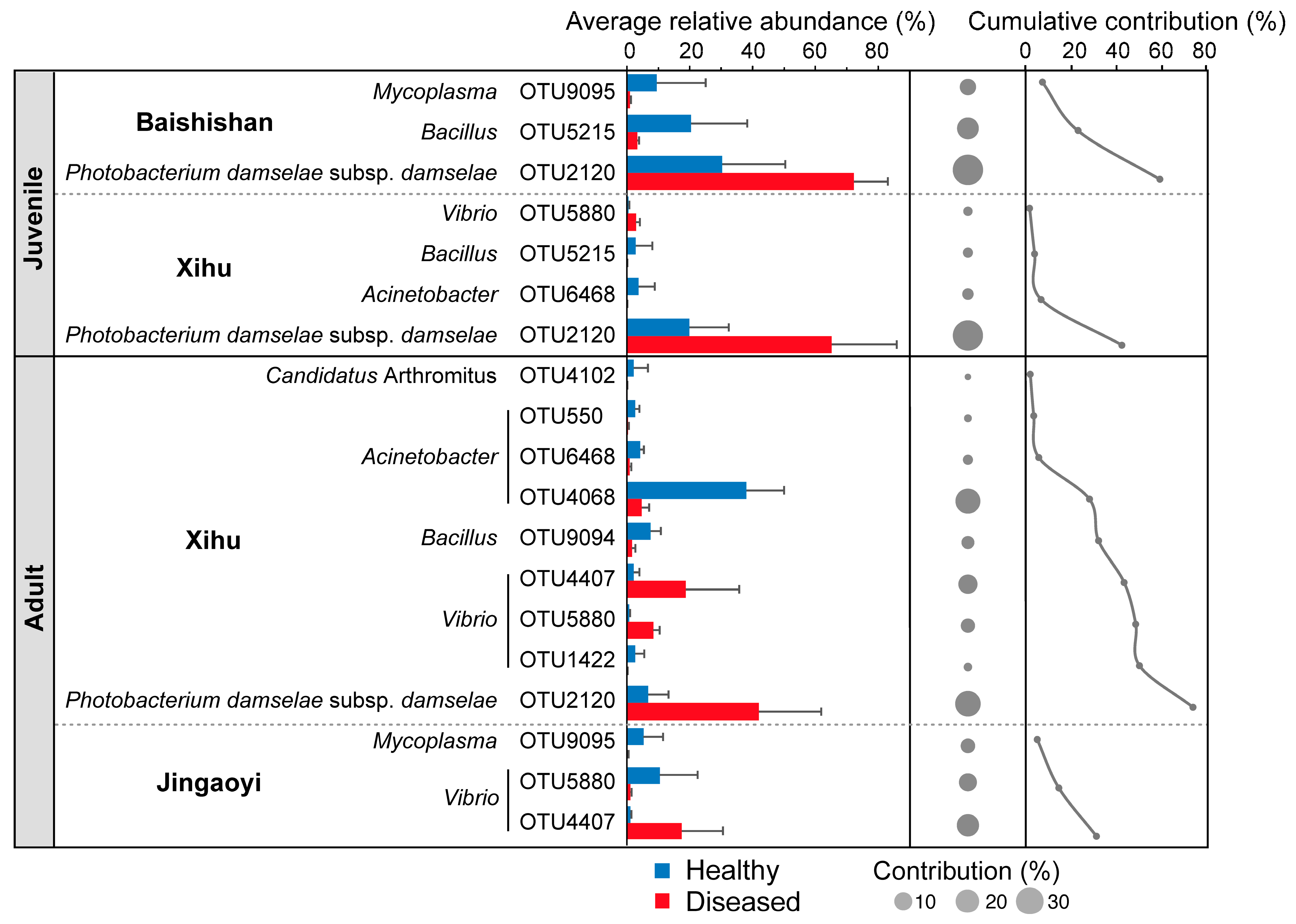 4.1. Reduced Diversity and Stability of the Gut Microbiota in White-Gill Diseased L. crocea
