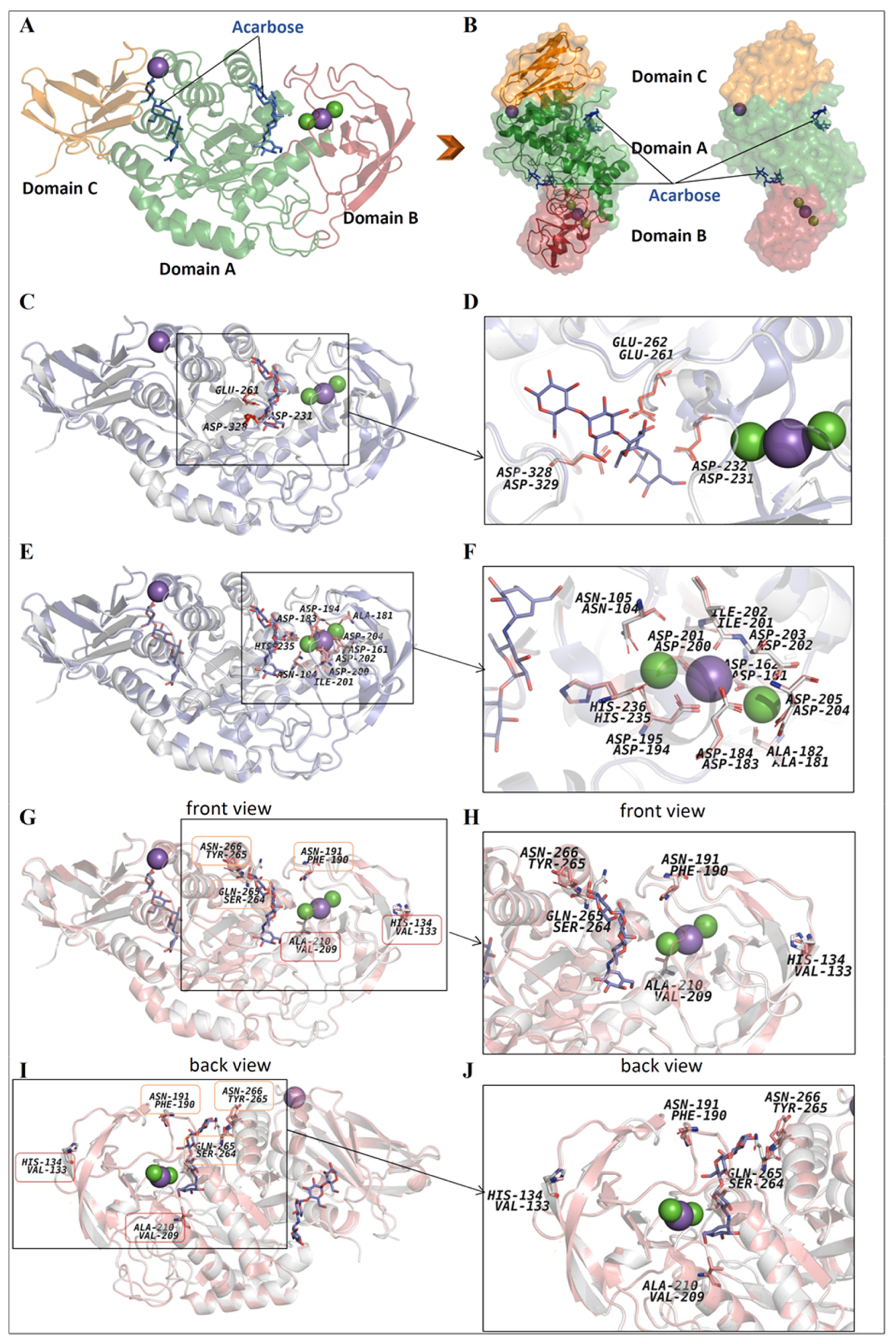 2.9. Obtaining a 3D-Model of the α-Amylase from B. licheniformis MGMM159 and Its Structural Analysis