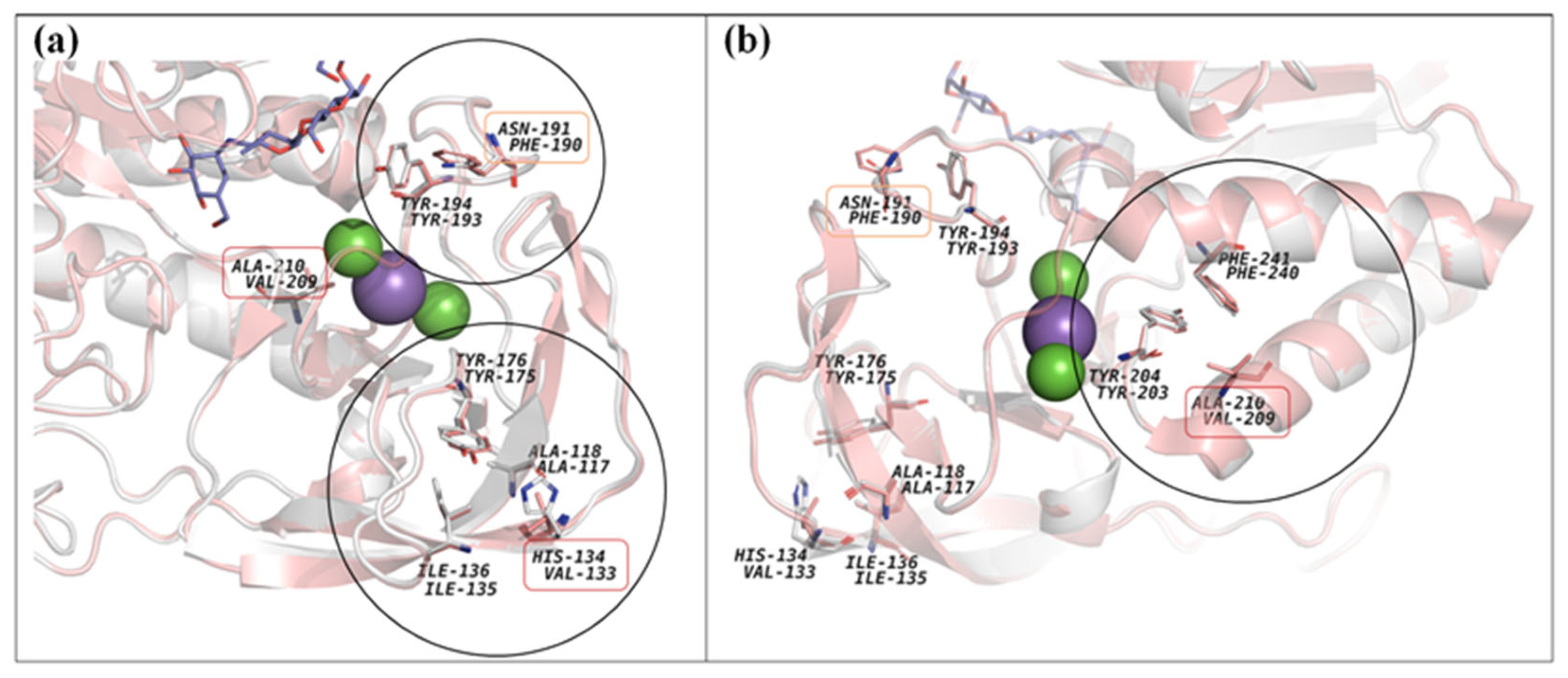 - DeLano, W.L. Pymol: An Open-Source Molecular Graphics Tool. CCP4 Newsl. Protein Crystallogr. 2002, 40, 82–92. [Google Scholar]