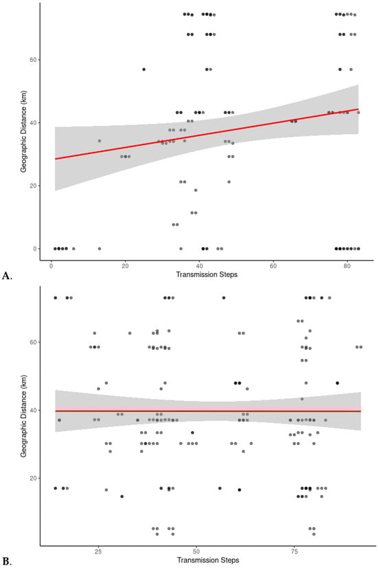 3.5. Spatial Association Between Transmission Steps and Geographic Distance