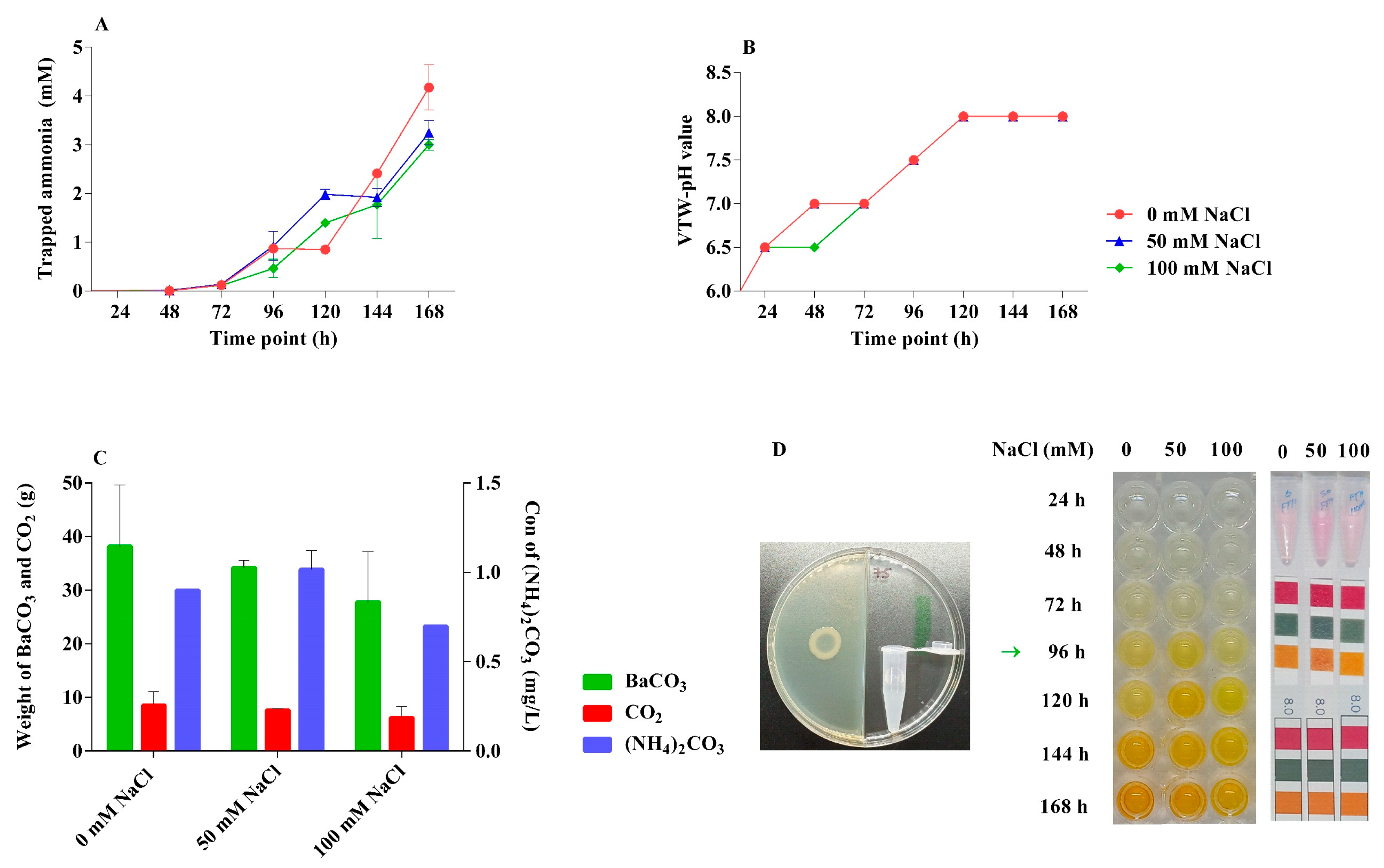 - Abdelwahed, S.; Trabelsi, E.; Saadouli, I.; Kouidhi, S.; Masmoudi, A.S.; Cherif, A.; Mnif, W.; Mosbah, A. A new pioneer colorimetric micro-plate method for the estimation of ammonia production by plant growth promoting rhizobacteria (PGPR). Main Group Chem. 2022, 21, 55–68. [Google Scholar] [CrossRef]