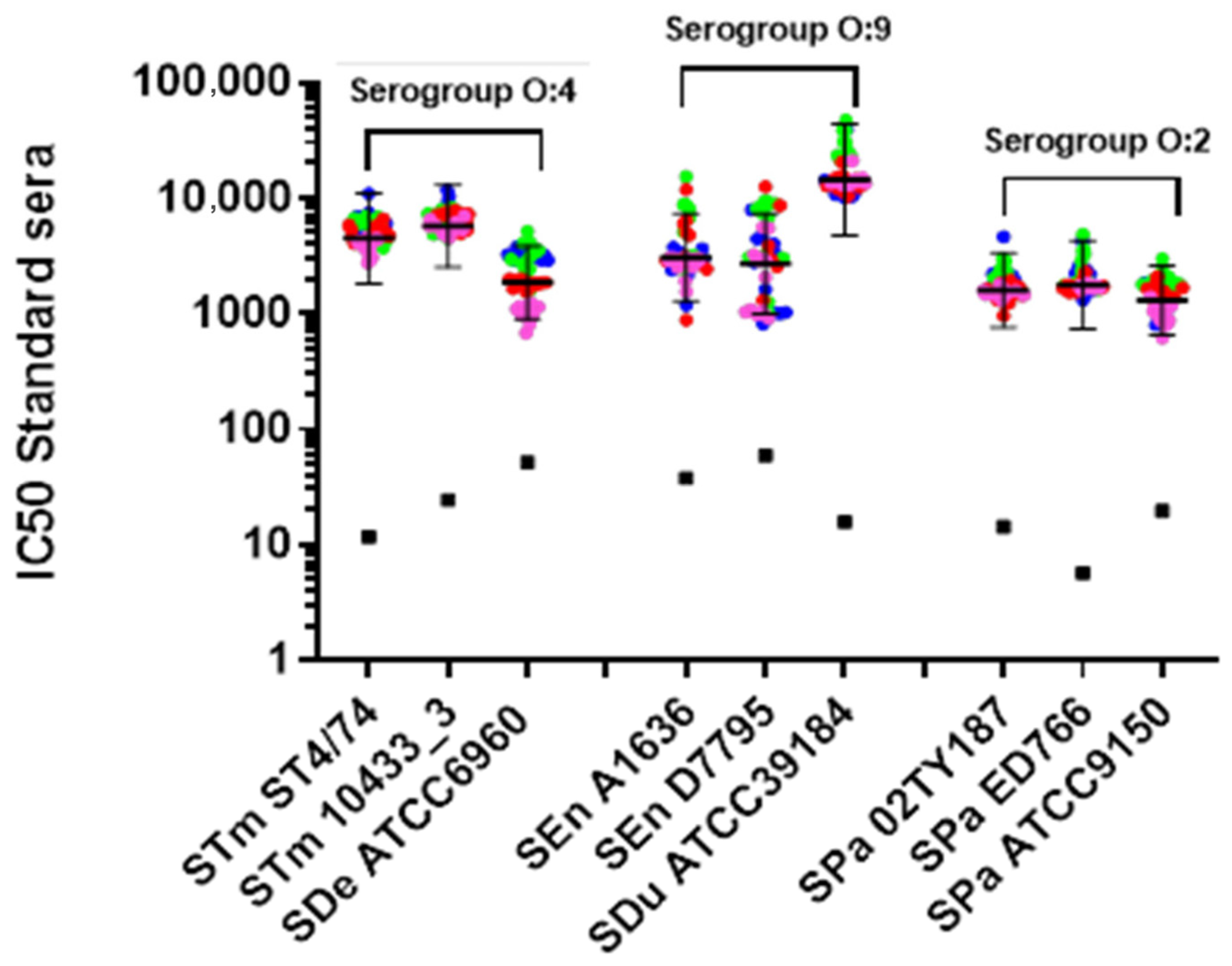 | O:4 | S. Typhimurium ST4/74 | STm ST4/74 | 118 [40] | 62 [40] |