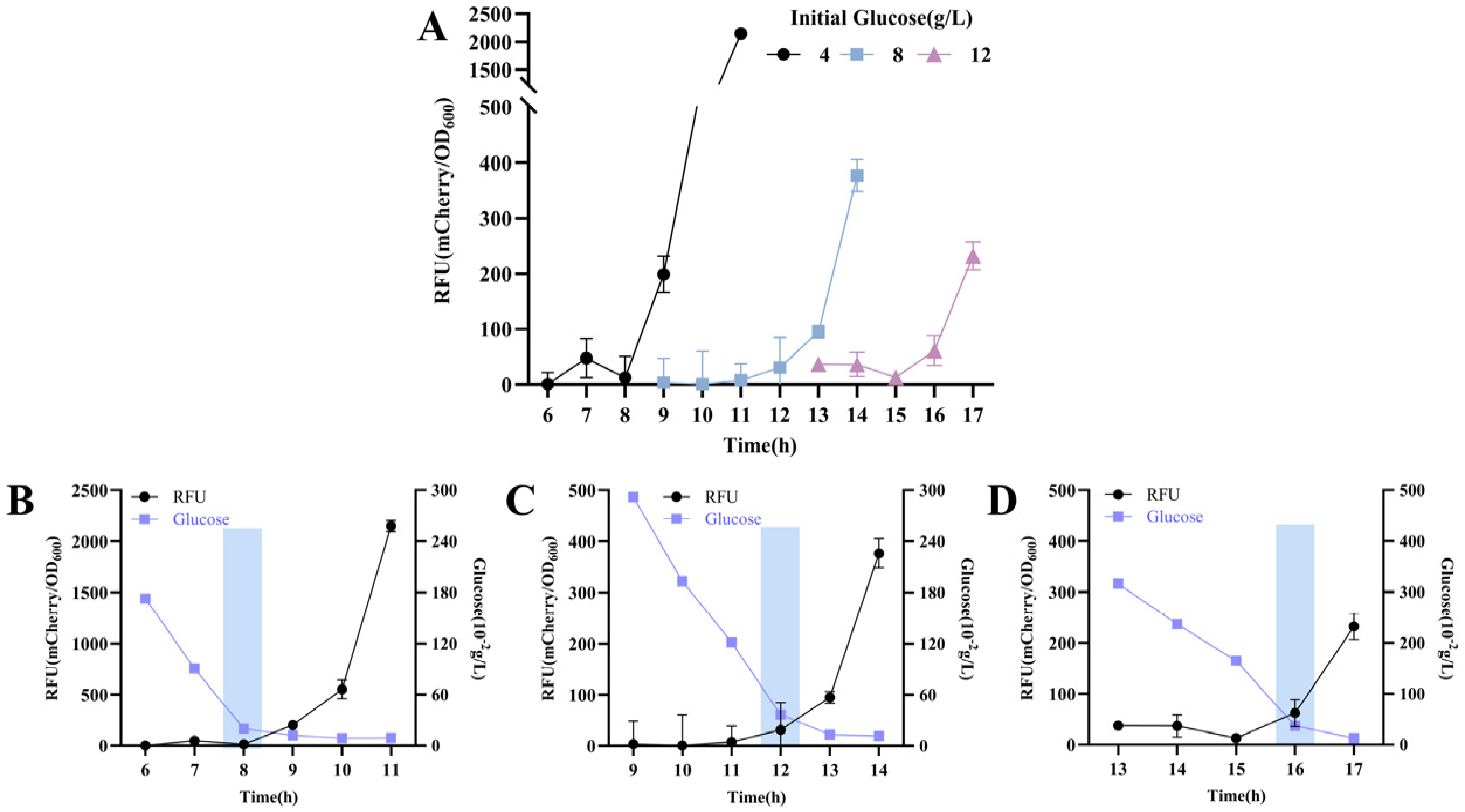 3.1. Construction and Characterization of a Glucose-Responsive Genetic Element
