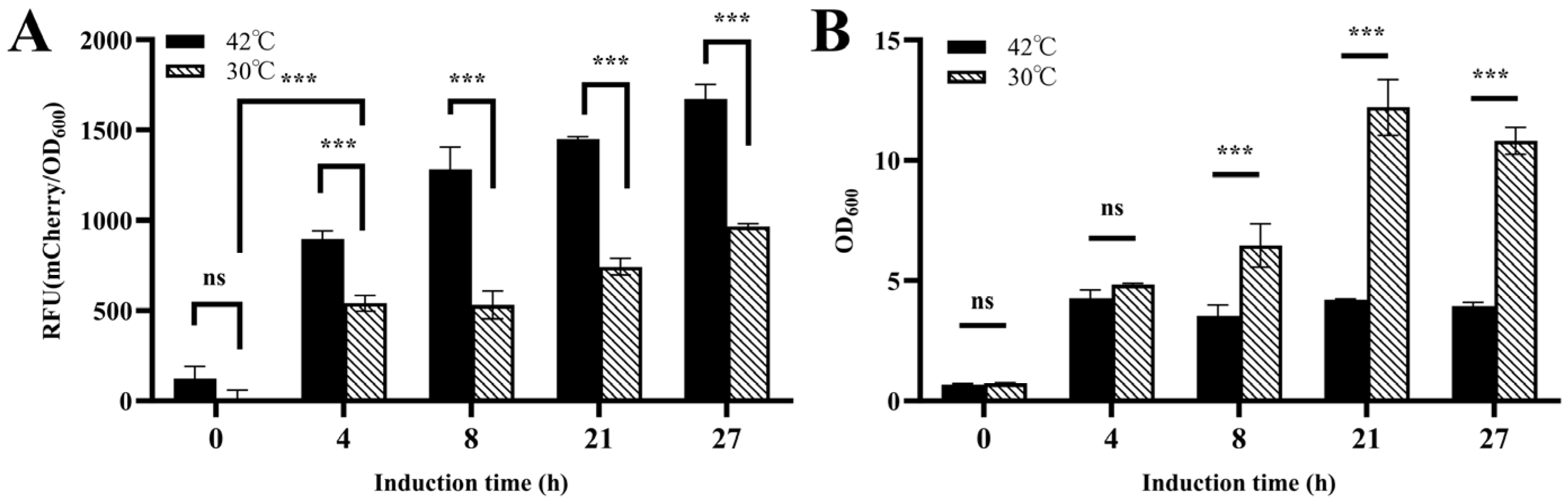 3.4. Construction and Validation of a Temperature-Responsive Lysis System