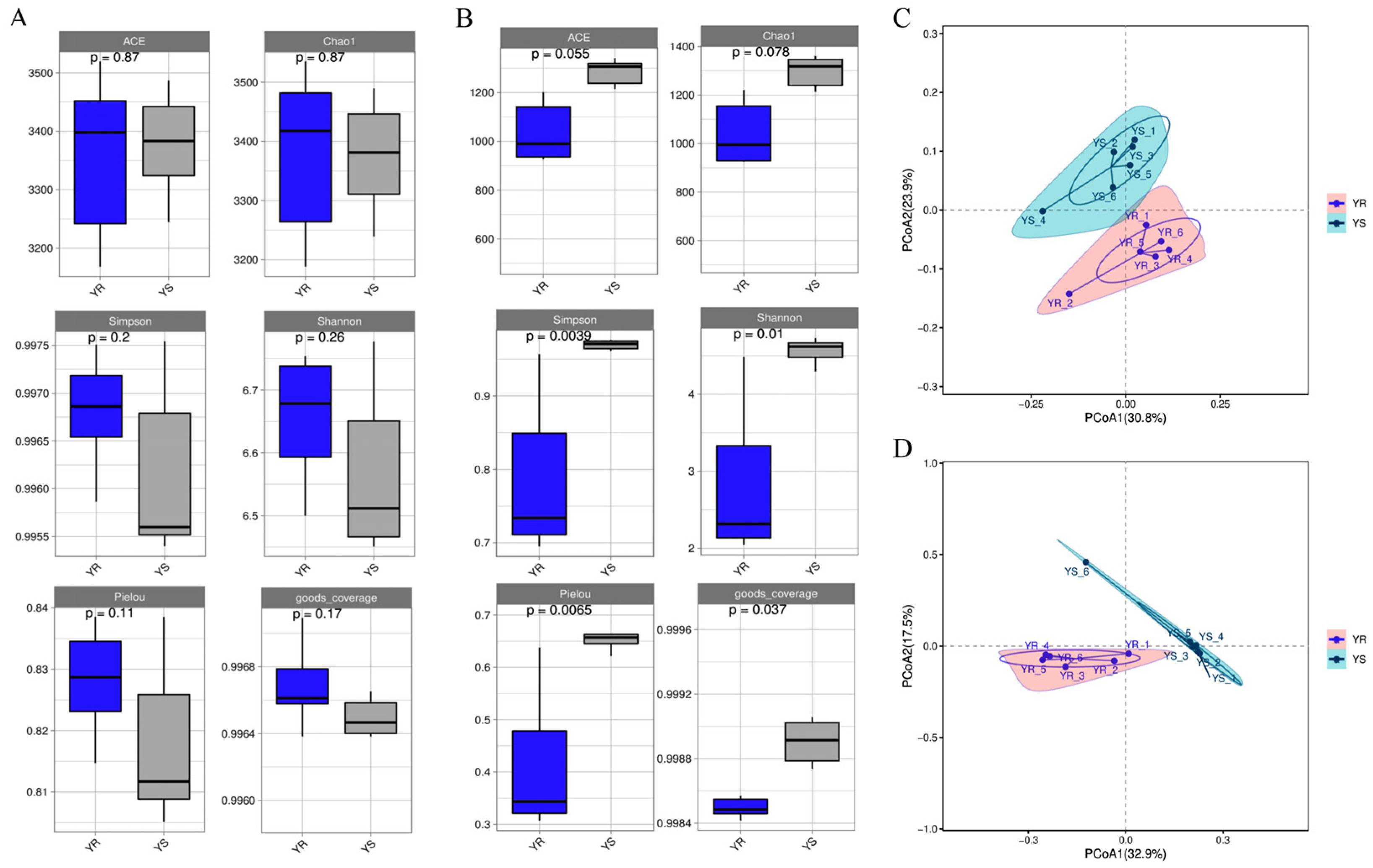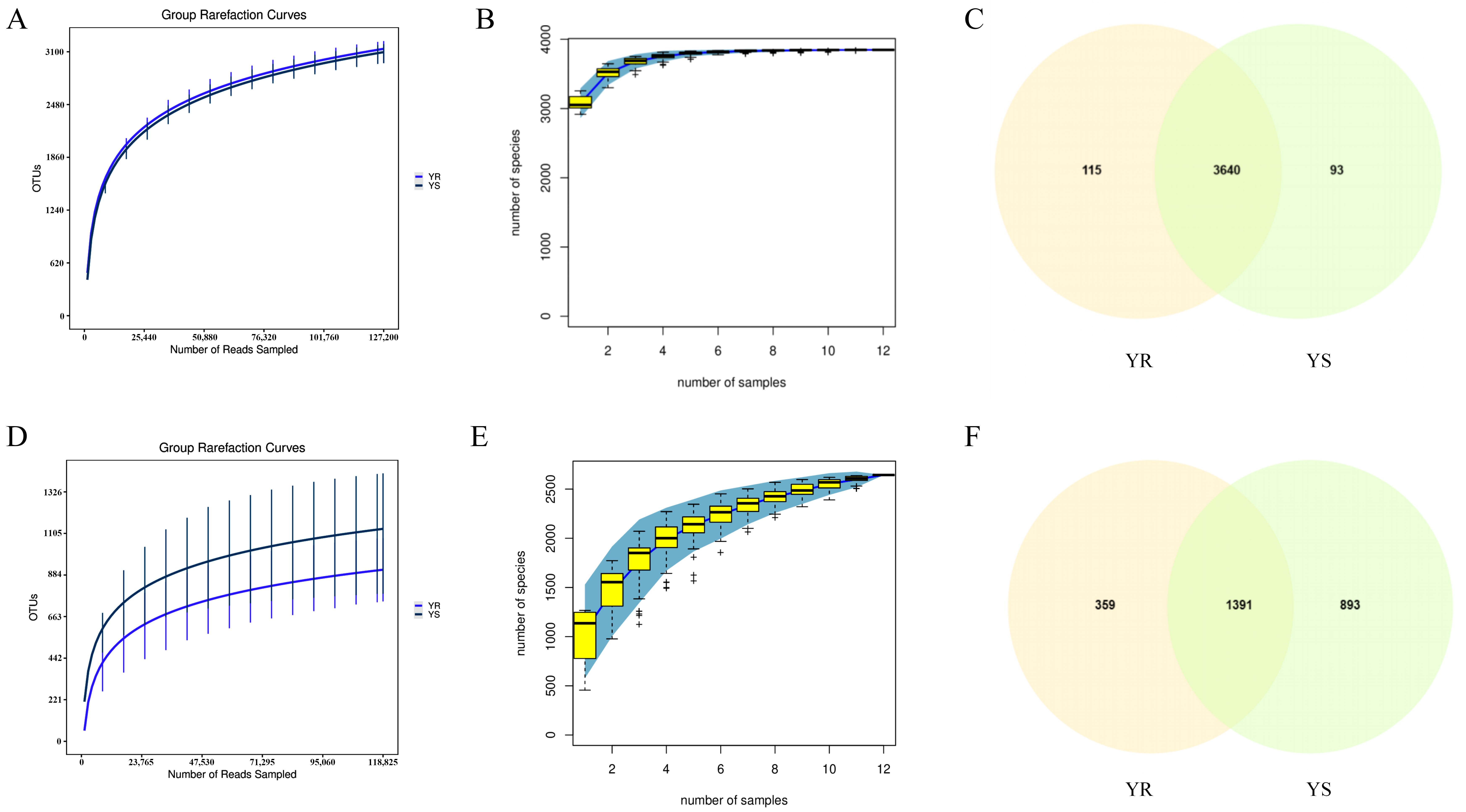 3.2. Microbial Sequencing Data Quality Control and OTU Basic Analysis for Diseased YS and Healthy YR Rhizosphere Soil
