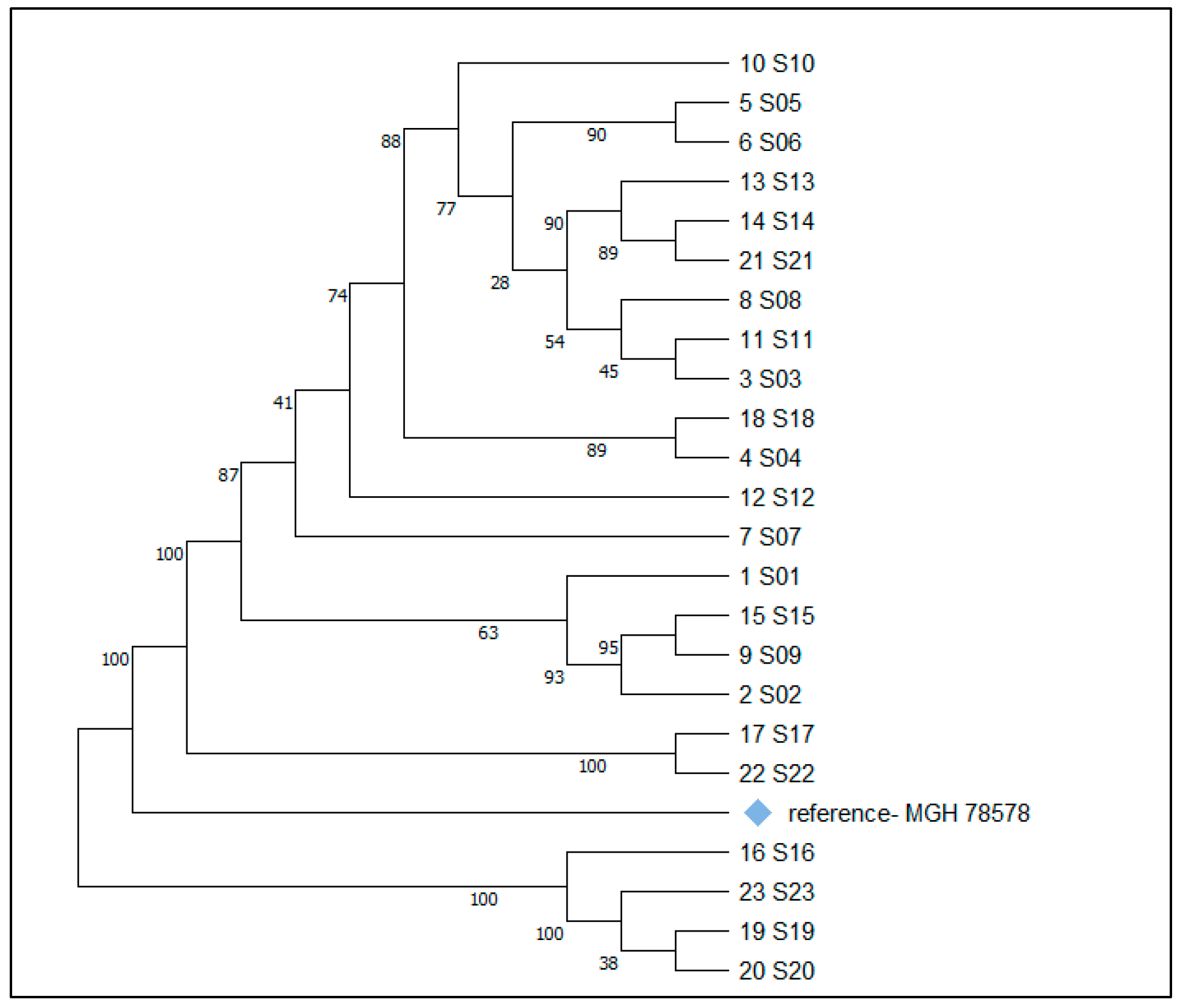 | 23 | 100% | ST39 | gapA_2 | infB_1 | mdh_2 | pgi_4 | phoE_9 | rpoB_1 | tonB_14 | CG10011 |