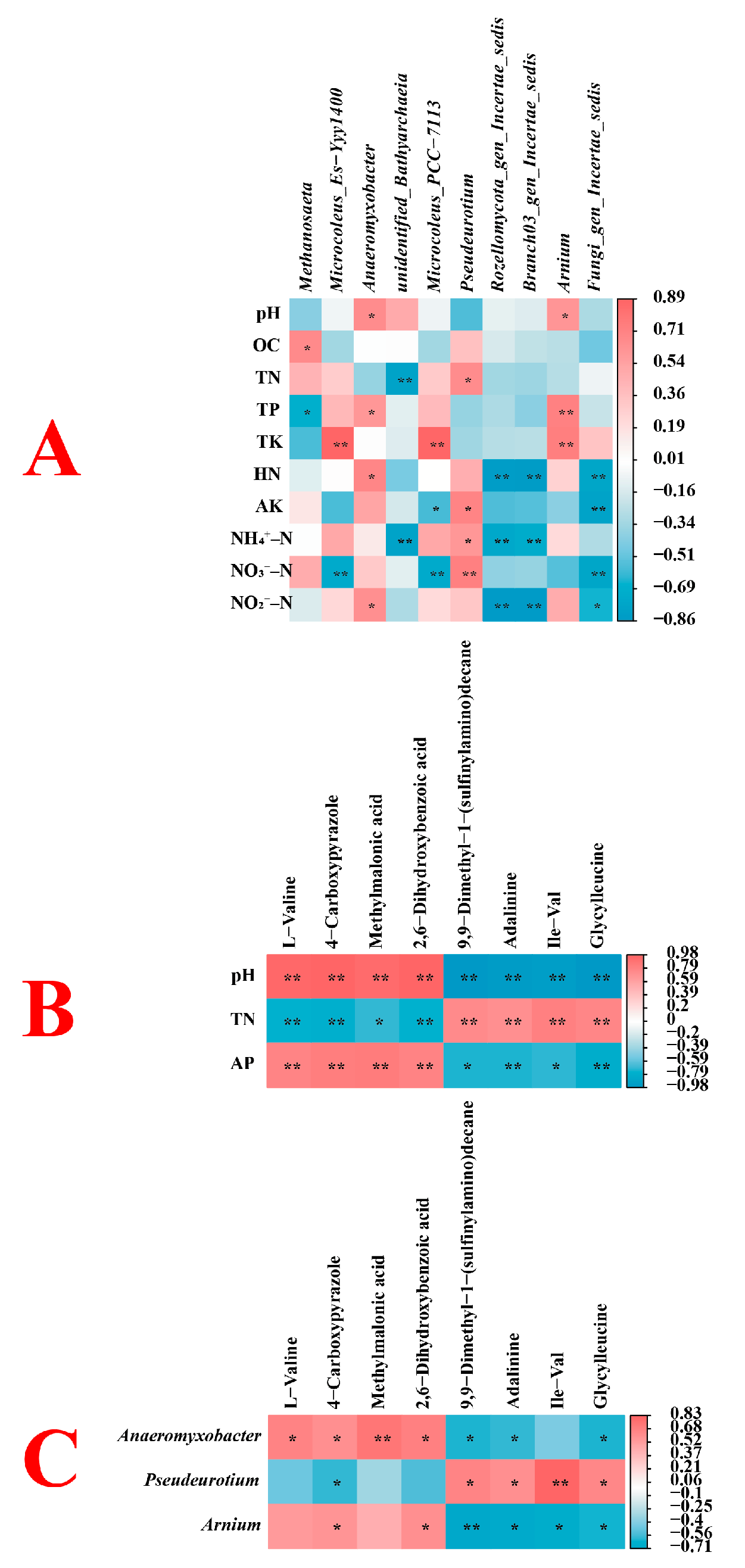 - Wang, C.; Yu, J.; Zhang, J.; Zhu, B.; Zhao, W.; Wang, Z.; Yang, T.; Yu, C. A review of factors affecting the soil microbial community structure in wetlands. Environ. Sci. Pollut. Res. 2024, 31, 46760–46768. [Google Scholar] [CrossRef]