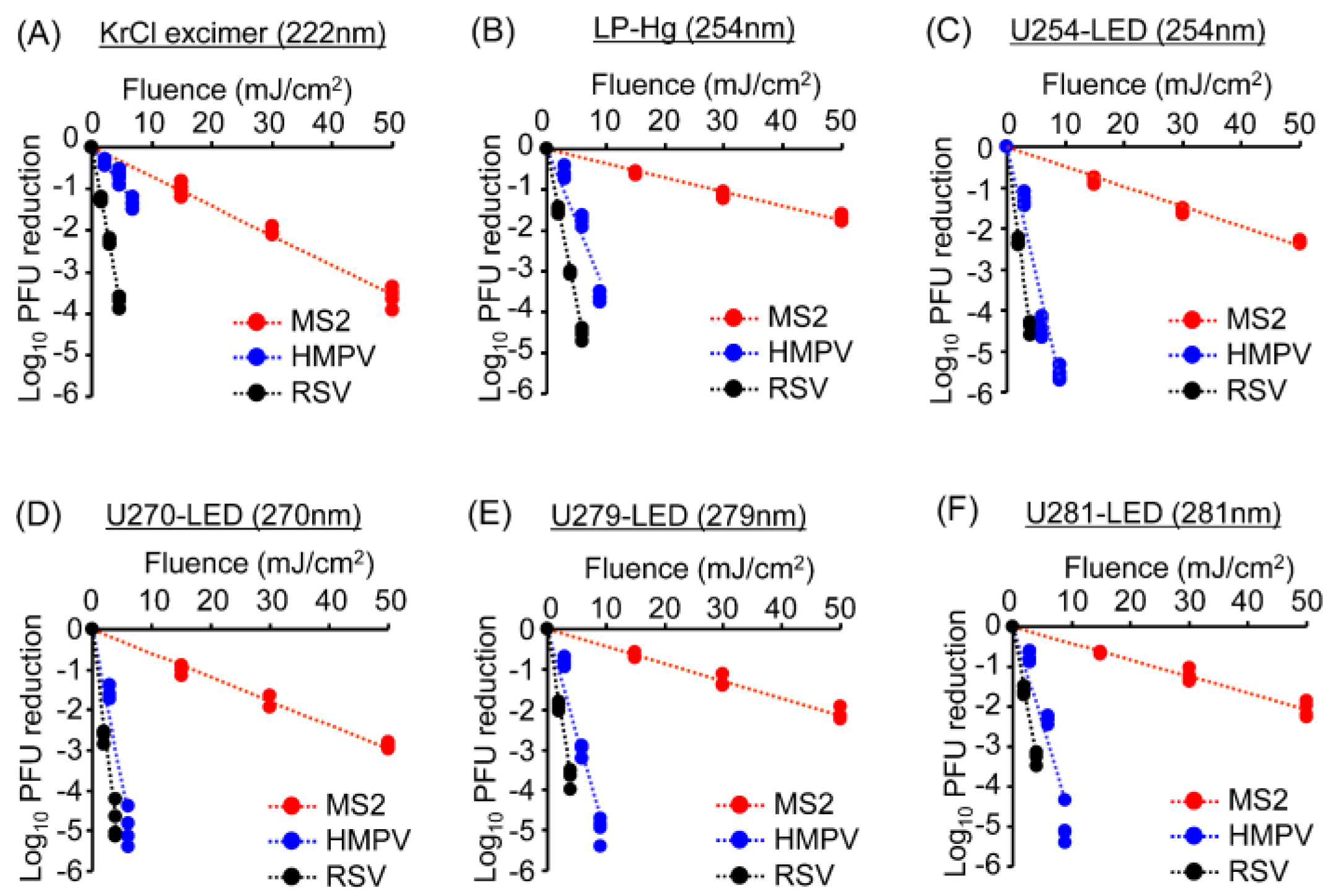 3.1. Standardized Irradiation Systems Were Validated Based on Their Virucidal Efficiency Against the MS2 Coliphage