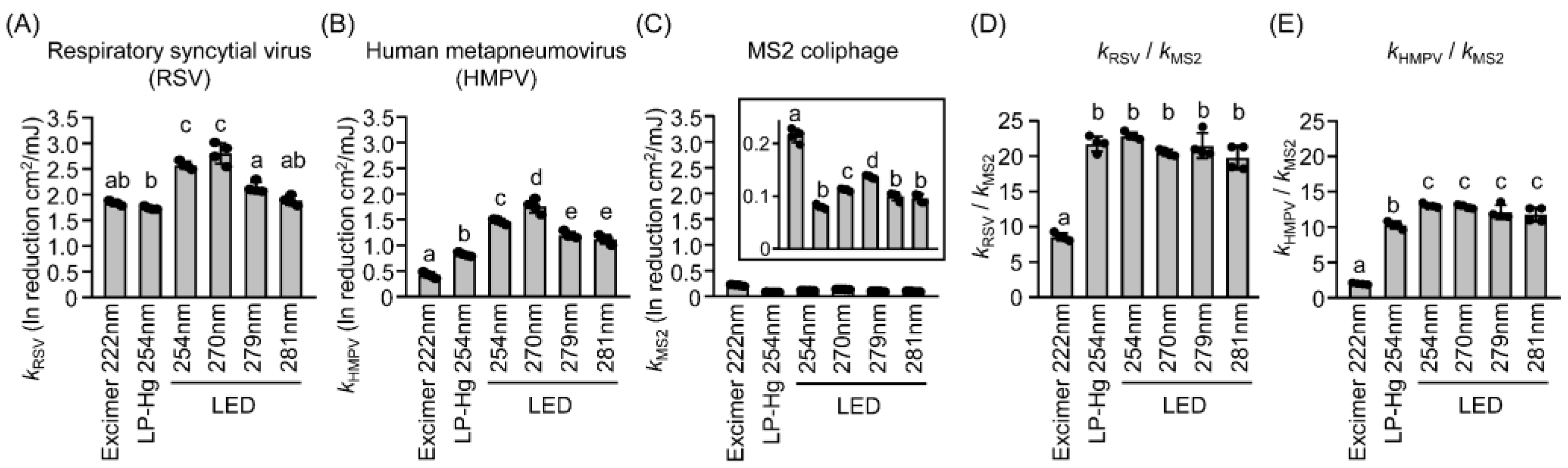 Mawatari K, Onoda Y, Kadomura-Ishikawa Y, Emoto T, Yamaguchi M, Hirano N, Toda S, Matsubara M, Uebanso T, Aizawa T, et al. Evaluation and Comparison of the UV-LED Action Spectra for Photochemical Disinfection of Coliphages and Human Pathogenic Viruses. Microorganisms. 2025; 13(12):2798. https://doi.org/10.3390/microorganisms13122798