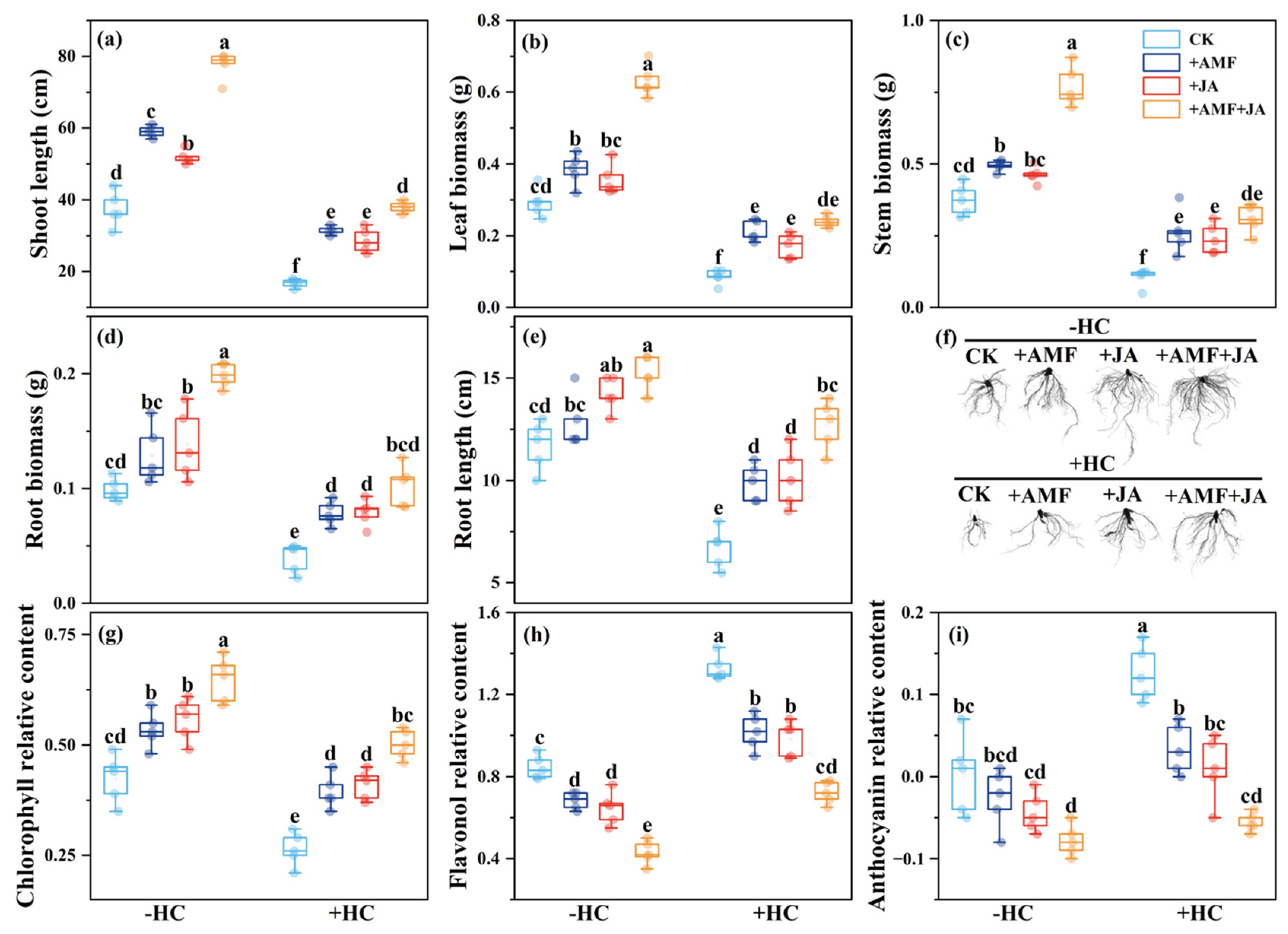 3.4. Effects of JA and AMF on the Growth of S. trilobata Under Herbicide Application