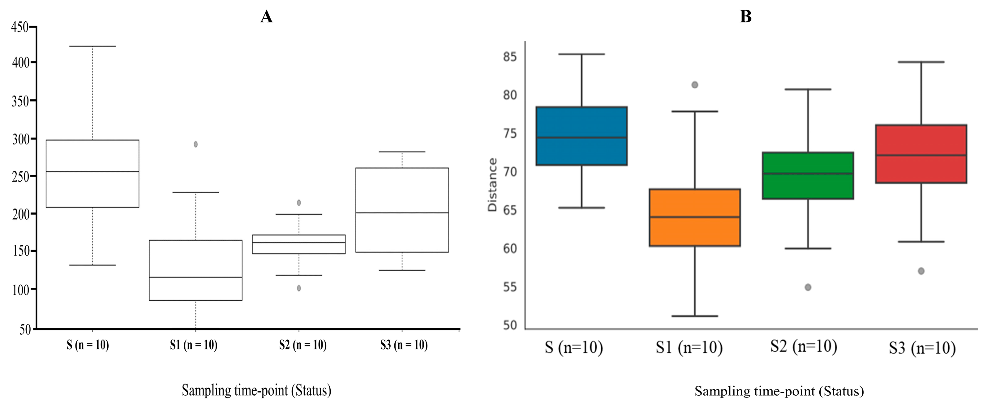 3.3. The Shift in the Gut Microbial Diversity and Richness in Response to Colorectal Resection