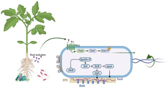 | Biofilm Formation and Colonization | EpsA, TapA, SipW, and TasA | Extracellular polysaccharides and amyloid fibers | Root colonization, biofilm stability, pathogen exclusion | [17] |