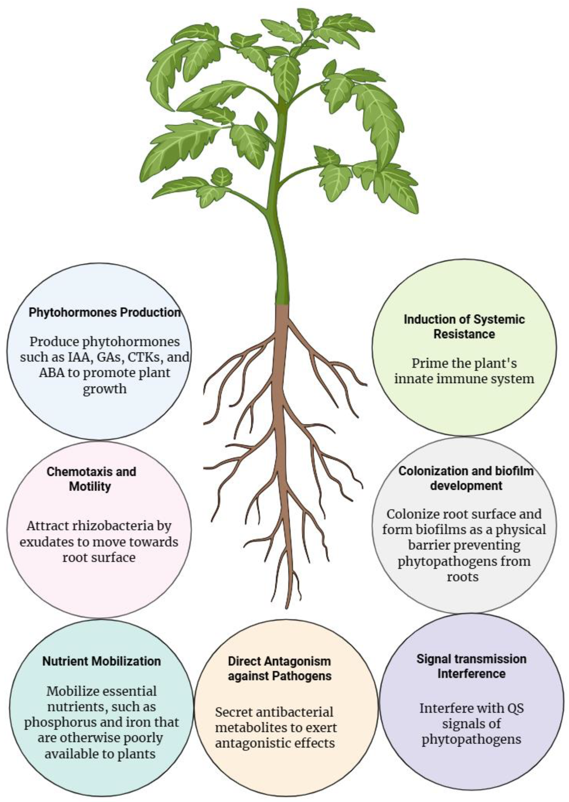 | Tli, and Mot | Flagella and motility proteins | Rhizosphere migration and root attachment | [21] | |